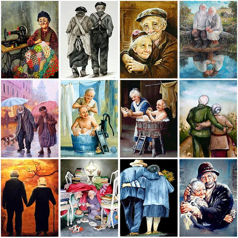 Старая Пара DIY 5D алмазная живопись, полные круглые стразы, вышивка крестиком, мультяшная мозаика, алмазная вышивка, настенное искусство, домашний декор