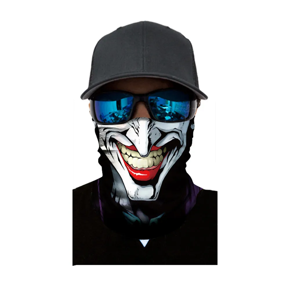 Шарф-накидка бесшовный с 3D изображением черепа, призрака, клоуна