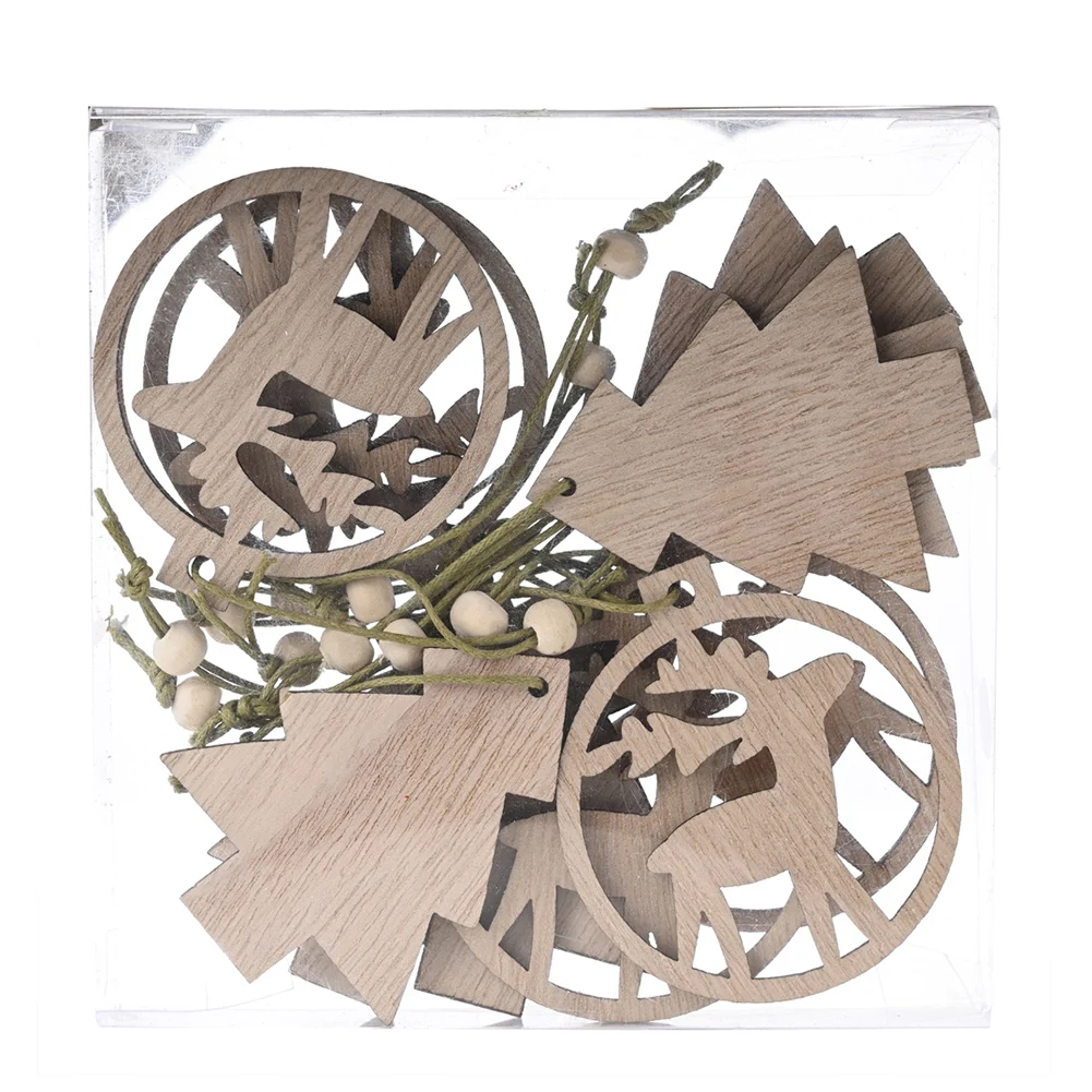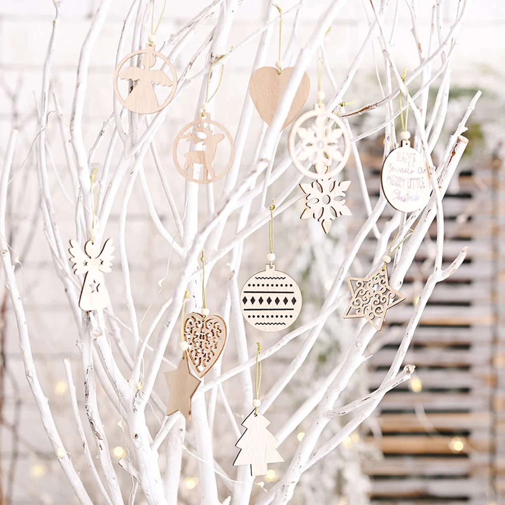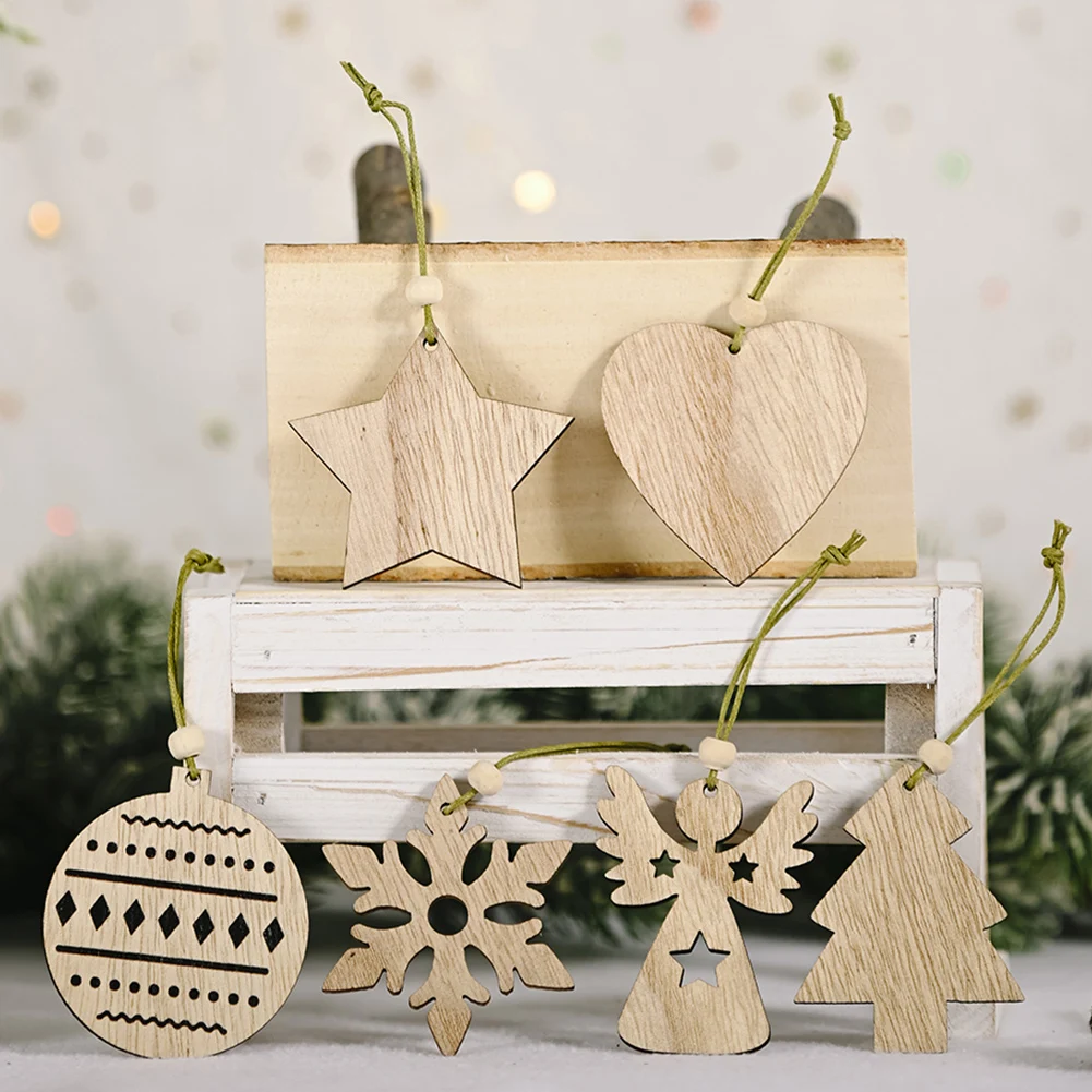16 шт.компл. выдалбливают DIY деревянный чип ремесла Рождественская елка Рождественские подвесные украшения подвеска детский подарок для дома вечерние украшения