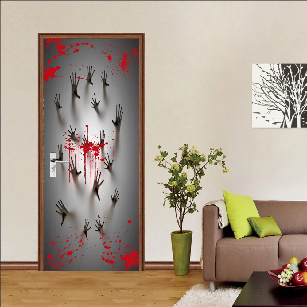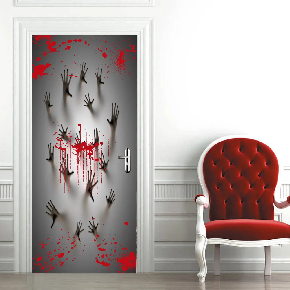 Страшный отпечаток руки, наклейки на дверь для Хэллоуина, вечерние, Декор, 3D клейкие обои, декорация для дверей, дом с привидениями