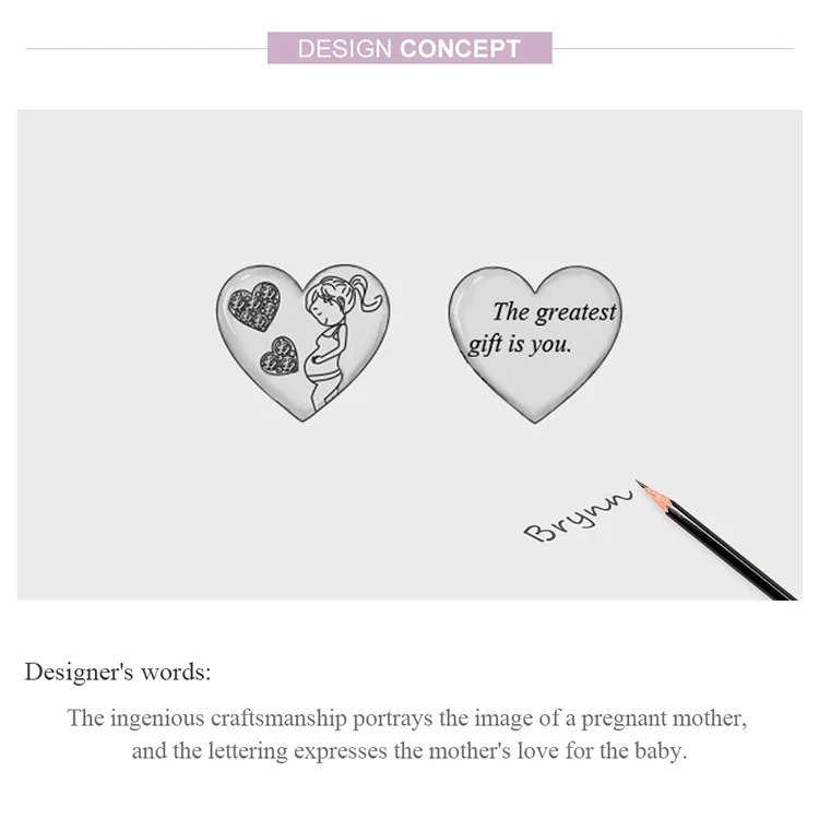 Материал: S925 + окисленное серебро + фианит с паве + процесс эмали Размер: 1*1,1 см Описание: Гениальное мастерство изображает образ беременной матери, и надпись выражает Любовь матери к ребенку.