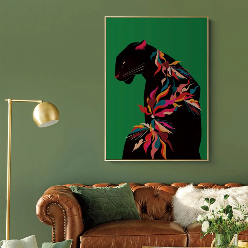 Настенная картина с пятнистым леопардом, скандинавский ретро постер в стиле современных цветов, модное настенное украшение для гостиной, домашний декор