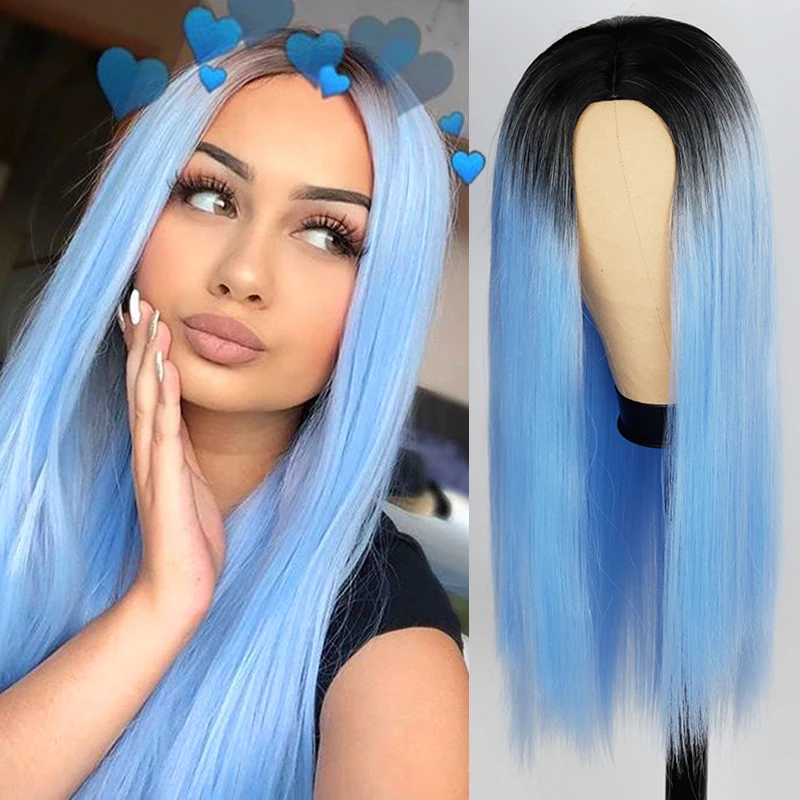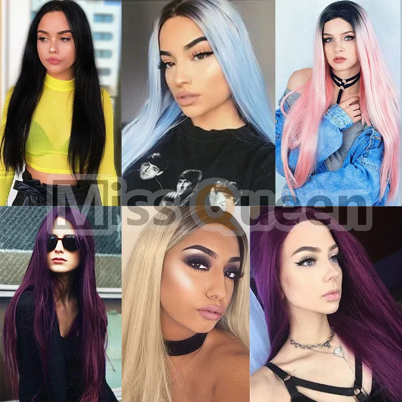 Синтетические парики для женщин, сине-зеленые, с эффектом деграде, 24 дюйма, черные, фиолетовые, термостойкие парики для косплея, MISS QUEEN
