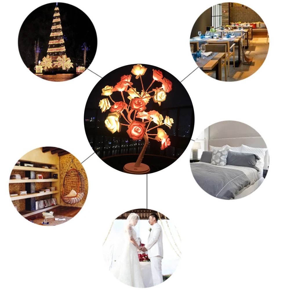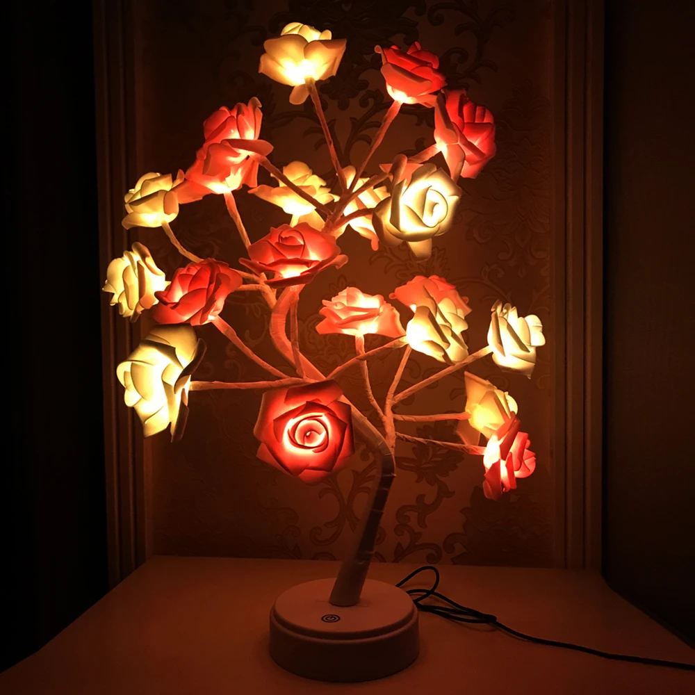 Светодиодный светильник в форме дерева Бонсай стиль 24 светодиодный s Роза цветок DIY USB Ночник светильник сенсорный выключатель управления Рождественский декоративный светильник