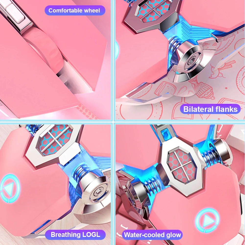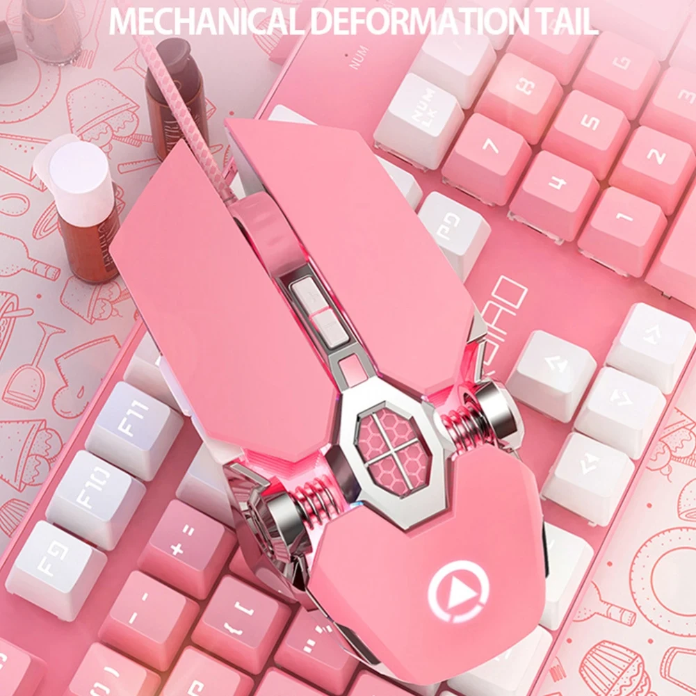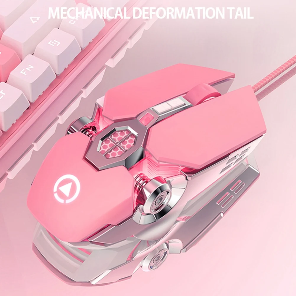 Проводная Механическая игровая мышь G3OS, 4 шестерни, светодиодная подсветка, для компьютеров и ноутбуков, розовая