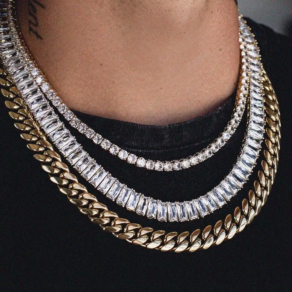 4*8 мм багет фианит cz ожерелье в виде цепочки для тенниса в стиле хип-хоп цепи из нержавеющей стали для мужчин и мальчиков, в стиле панк-рок со льдом хип-хоп цепочка