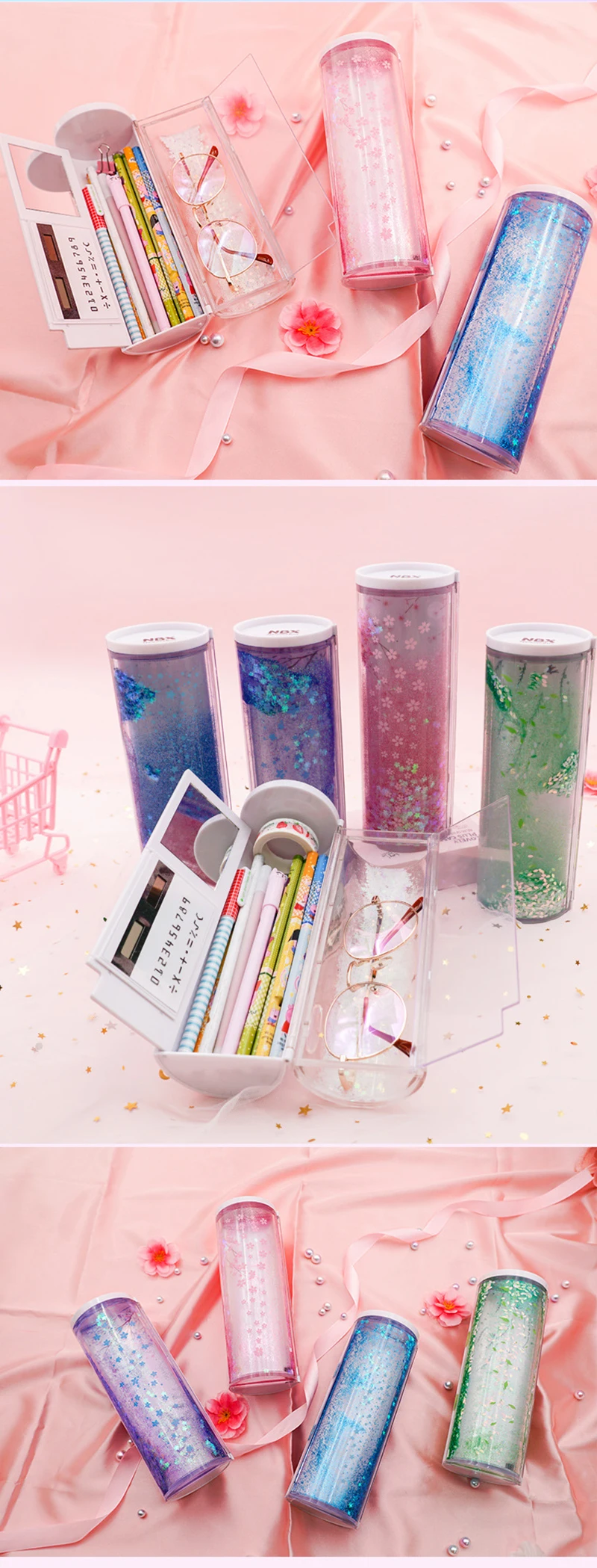 Милый чехол для карандашей с сыпучим песком, милые школьные чехлы с животными, новинка, школьный пенал, школьный пенал с калькулятором, школьный пенал