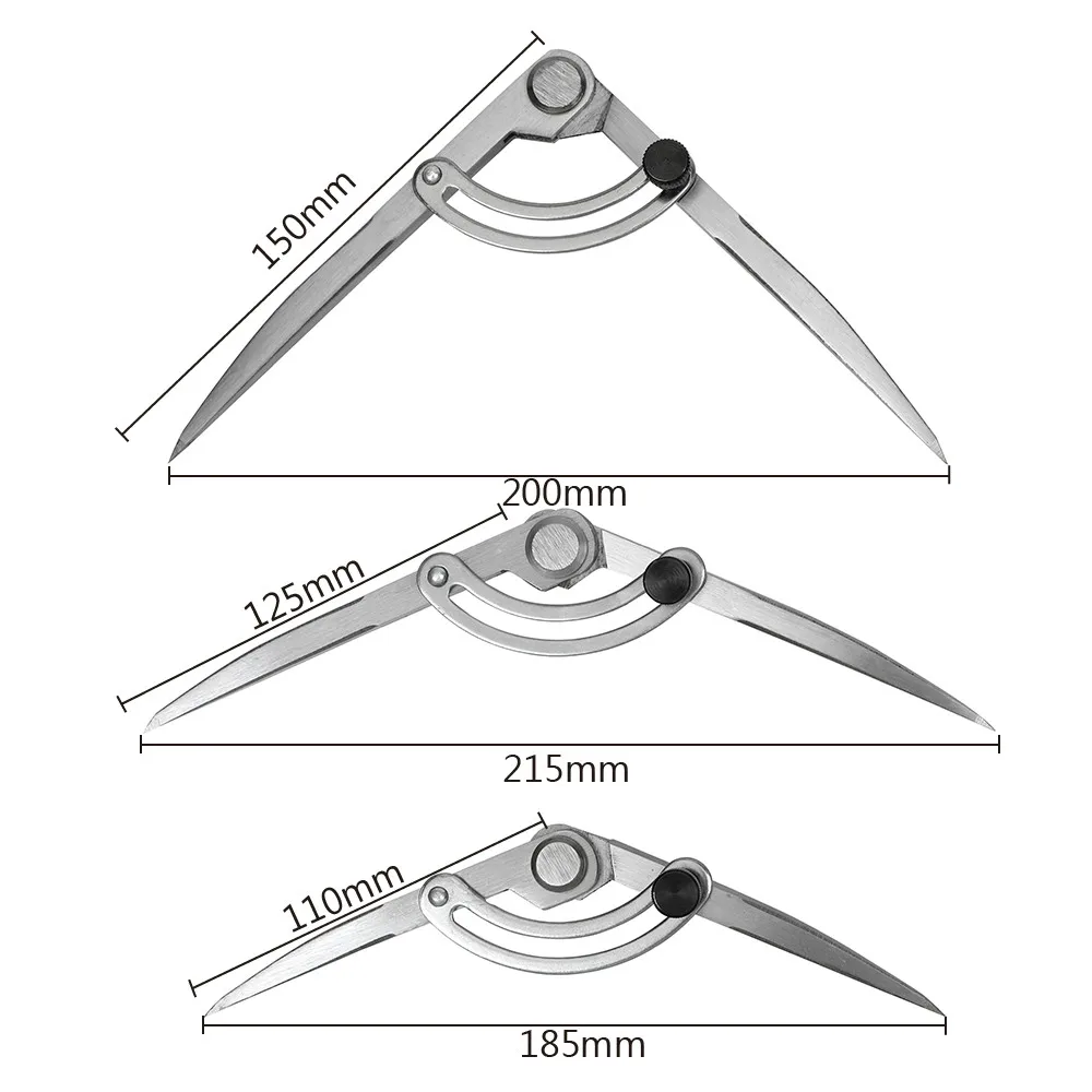 100% новый и высококачественный! Материал: углеродистая сталь Высококлассное регулирование расстояния между бутиками Кожаный инструмент ручной работы Боковое устройство Edger Scribe Регулировка расстояния Размер продукта: 100 мм см, 125 мм, 150 мм Диапазон: 170 мм, 220 мм, мм В комплект входит: 1 х компасы с шагом
