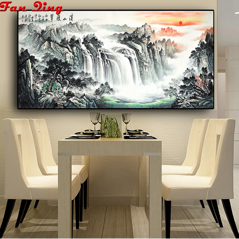 Горный и речной Восход полная дрель квадратная круглая Алмазная вышивка китайский пейзаж 5D DIY Алмазная Живопись Вышивка крестом