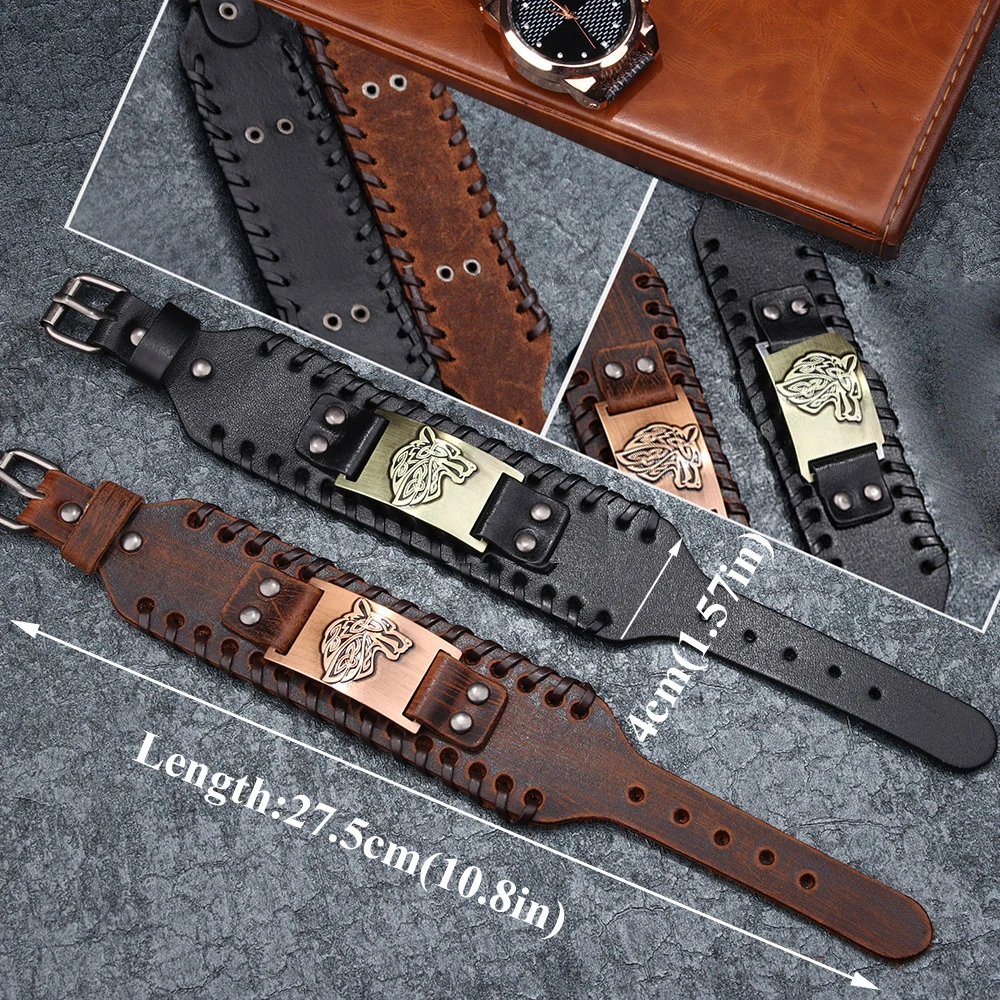 ♥【Дизайн 】 кожаные браслеты с широким ремешком, браслет с принтом головы волка из сплава, винтажный стиль, широкие браслеты.♥【Material】 натуральная кожа, здоровая для кожи. Она более износостойкая, более прочная, мягкая кожа, лучшая воздухопроницаемость, прочная и долговечная.♥【SIZE】The приблизительная длина из браслеты-10,8 дюймов, браслеты регулируется, удобно носить, подходит для мужчин и мальчиков-подростков.♥[Идеальный подарок] Лучший выбор подарков на день рождения, юбилей, праздники, выпускной, Рождество, День Святого Валентина и любой другой случай. Это отличный подарок, чтобы выразить любовь.♥【PACKAGE】 1 шт браслет. Поставляется с красивой подарочной сумкой или подарочной коробкой, можно дать в подарок своим друзьям, любимым или побаловать себя.