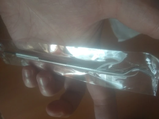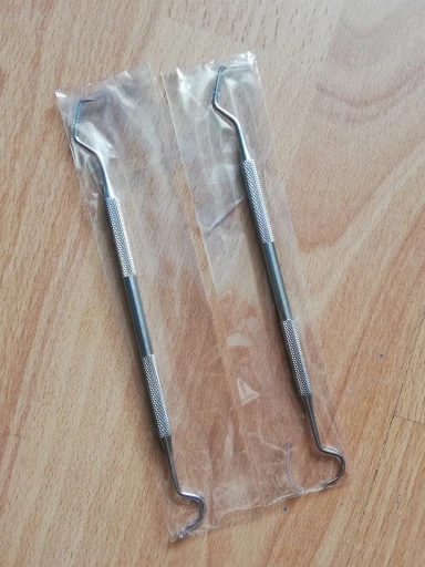 Острые кончики закрыты пластиковыми трубочками. Кончики гнутся, не достаточно упругие. Материал указан нержавейка, к магниту притягивается. Покупал для мелких работ в быту.