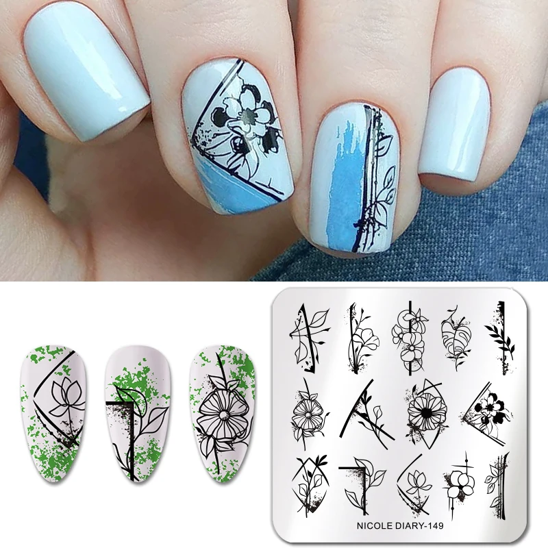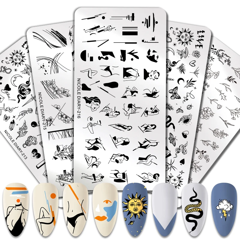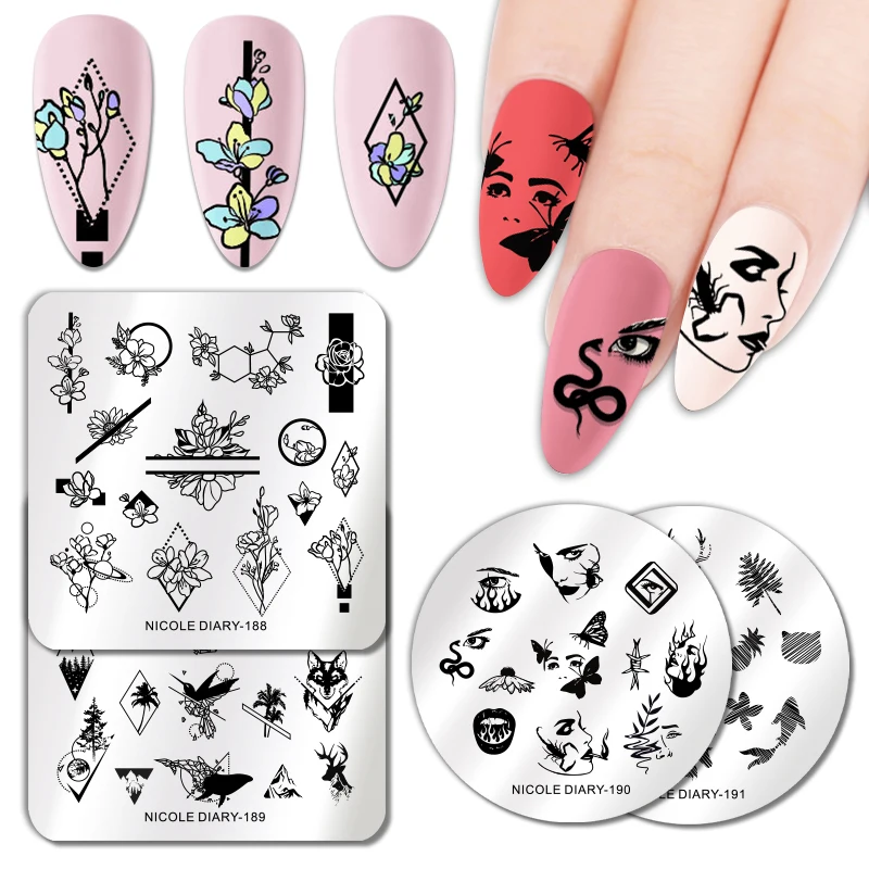 Прямоугольные пластины для стемпинга ногтей NICOLE DIARY, из нержавеющей стали, для молодых девушек, трафареты для дизайна ногтей, инструменты для печати