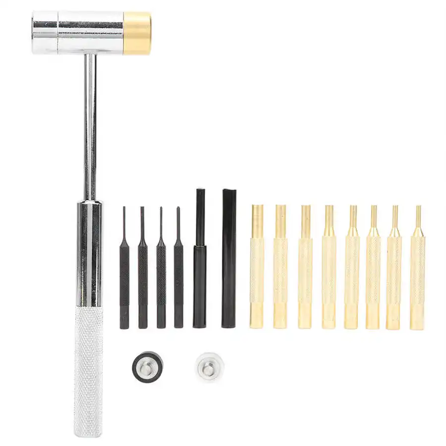 17 шт Набор пробивных штифтов, двусторонний молоток из латуни, нержавеющая сталь, инструмент для обслуживания