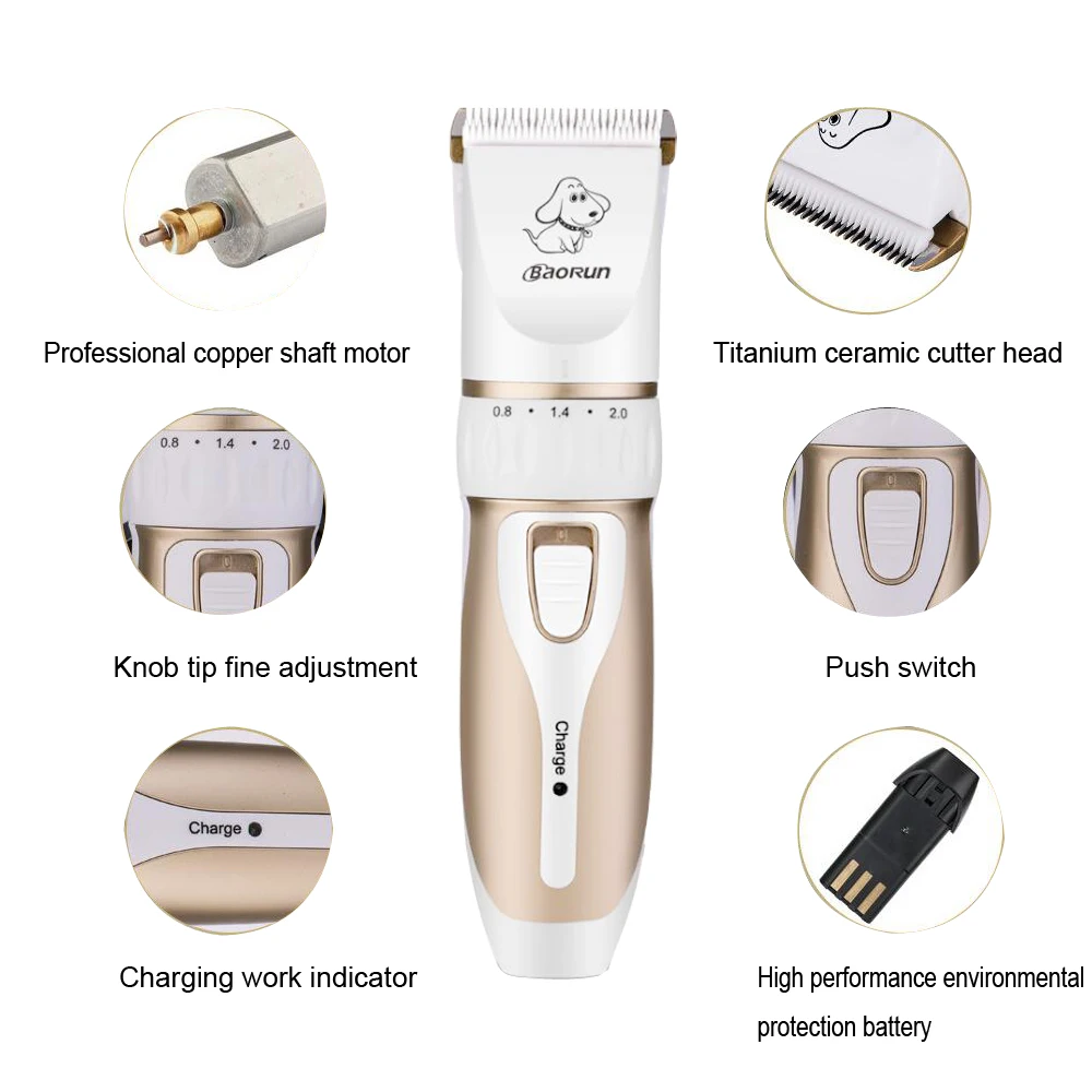 Электрическая машинка для стрижки домашних питомцев Baorun P3, перезаряжаемый клипса для шерсти мишки тедди, собак, кошек, медный триммер для щенков