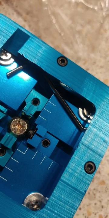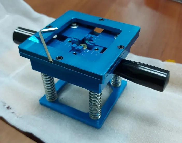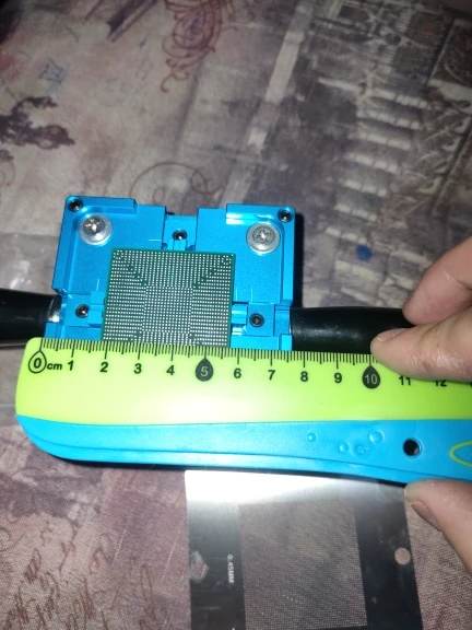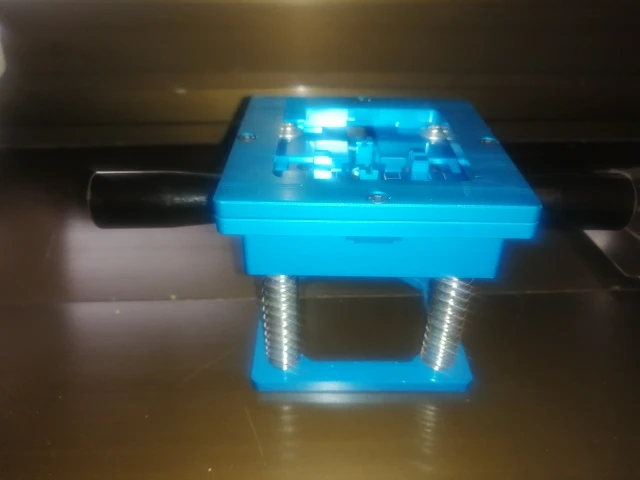 Качество станка для реболлинга отличное, дефектных компонентов нет, прибыло все что должно было быть. Немного подтянул нижние винты направлящих столика. Платформа на которой удерживается микросхема опускается нормально, не клинит, я дал немного силиконовой смазки по направляющим - стало еще лучше. В плане удержания микросхемы на подвижных фиксаторах , есть некоторые проблемы. Все фиксаторы, от нижней плоскости до нижнего края уступа на котором удерживается (упирается) микросхема, имеют разный размер с разбросом до 0,2 мм, поэтому равномерно и в одной плоскости зафиксировать чип всеми четырьмя фиксаторами не получается, чип колышется в разные стороны. Реально зафиксировать только двумя фиксаторами. Тоесть горизонтальная плоскость фиксирования IC не выдержана при производстве столика. Придется дорабатывать.
