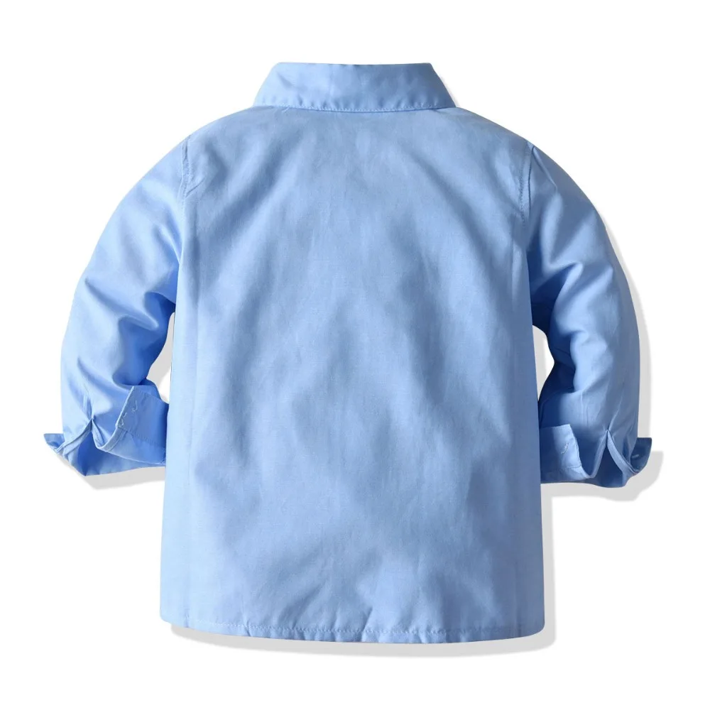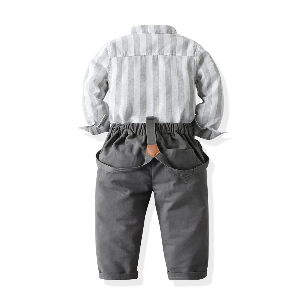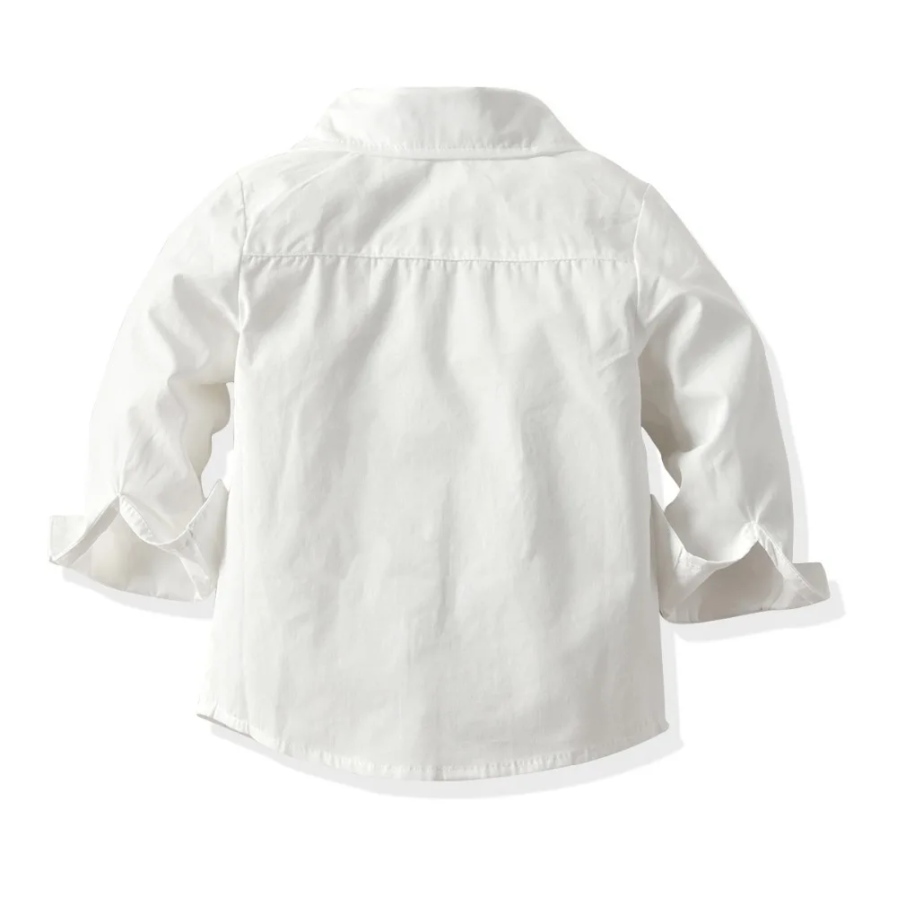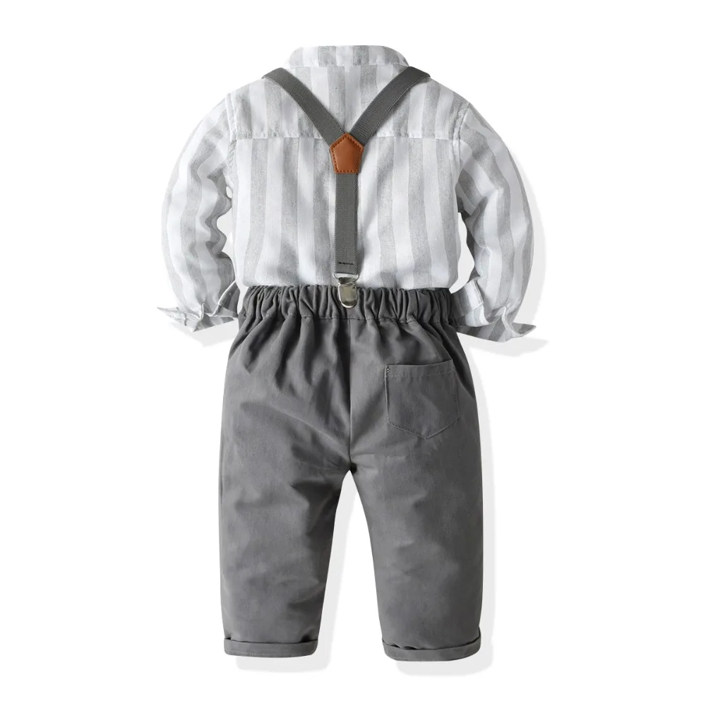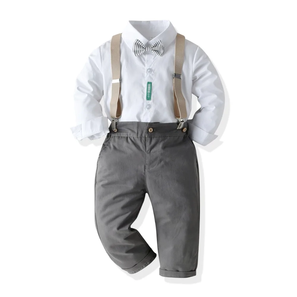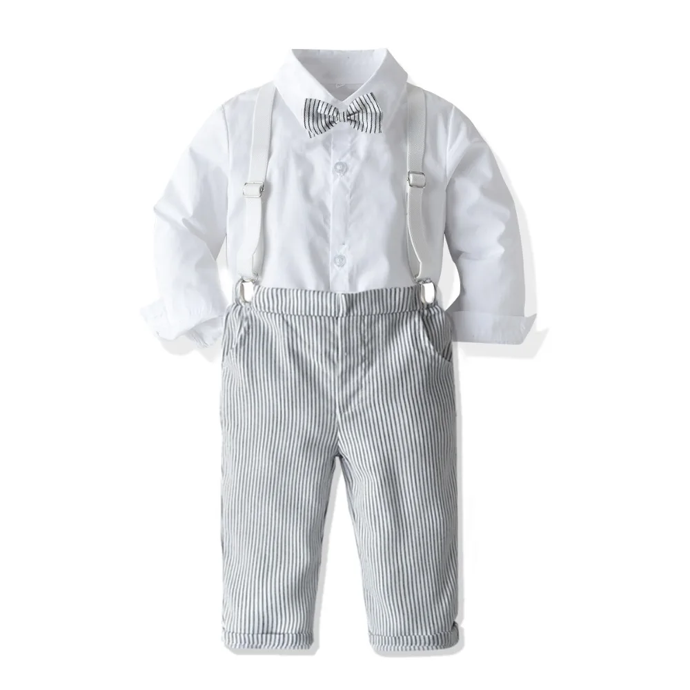 Рождественские костюмы джентльмена для маленьких мальчиков детская белая рубашка с галстуком-бабочкой + красные брюки на подтяжках, комплекты Детские вечерние костюмы