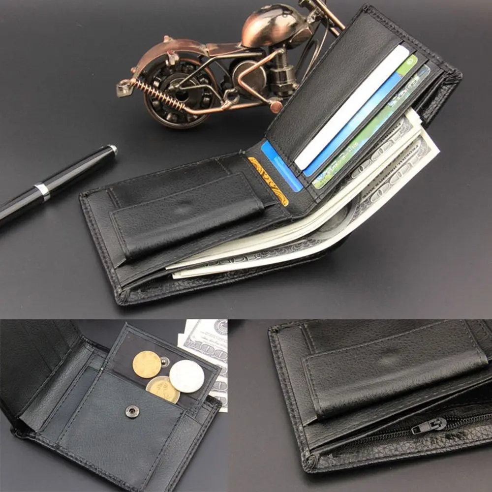 Мужской простой кошелек, кожаный однотонный тонкий кошелек, мужской, из искусственной кожи, складной, короткий, с держателем для кредитных карт, деловой кошелек для мужчин