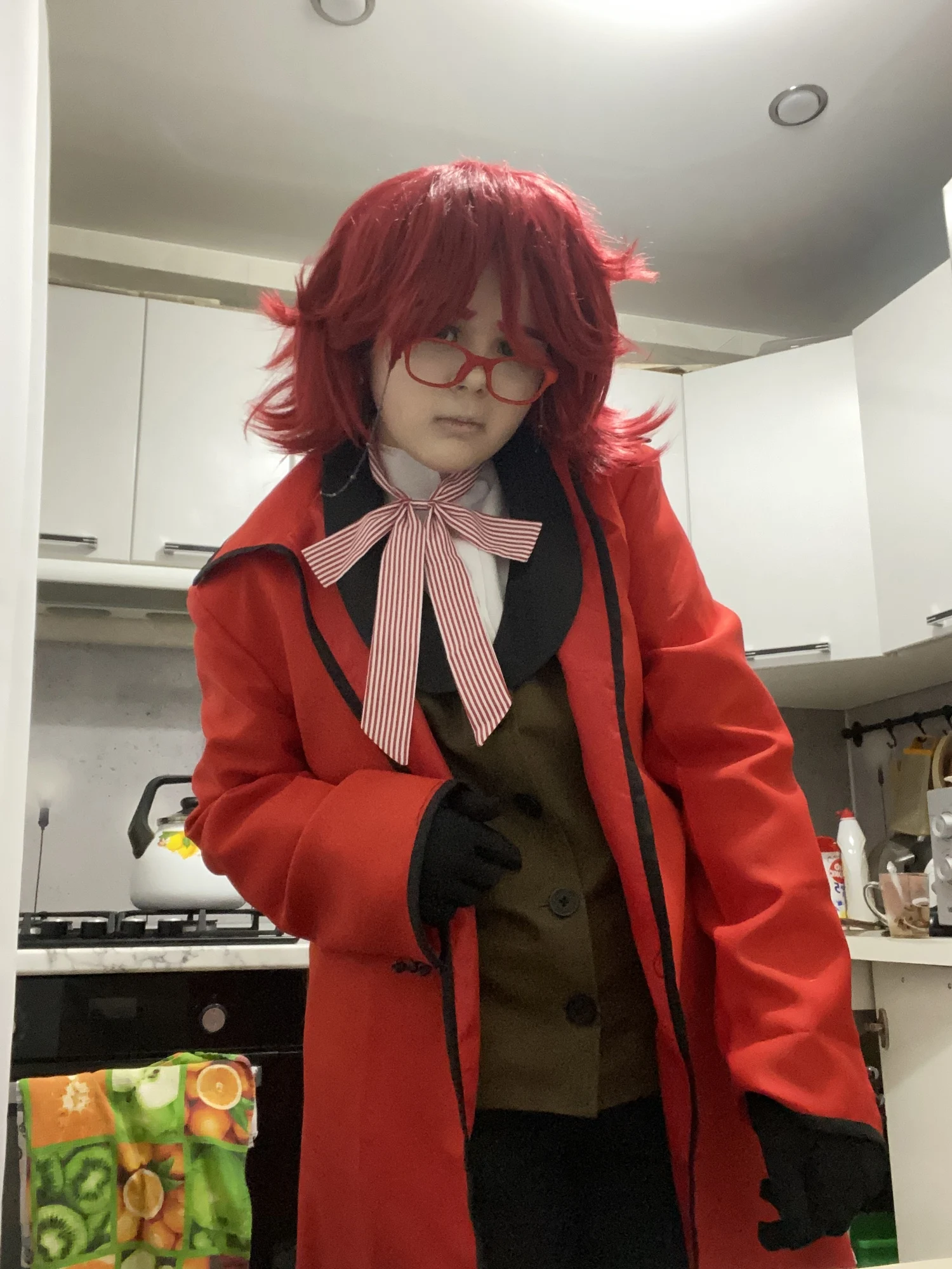 Костюм черного дворецкого из смерти, красная униформа для косплея, костюм черного дворецкого из курошицуджи, красные длинные волосы
