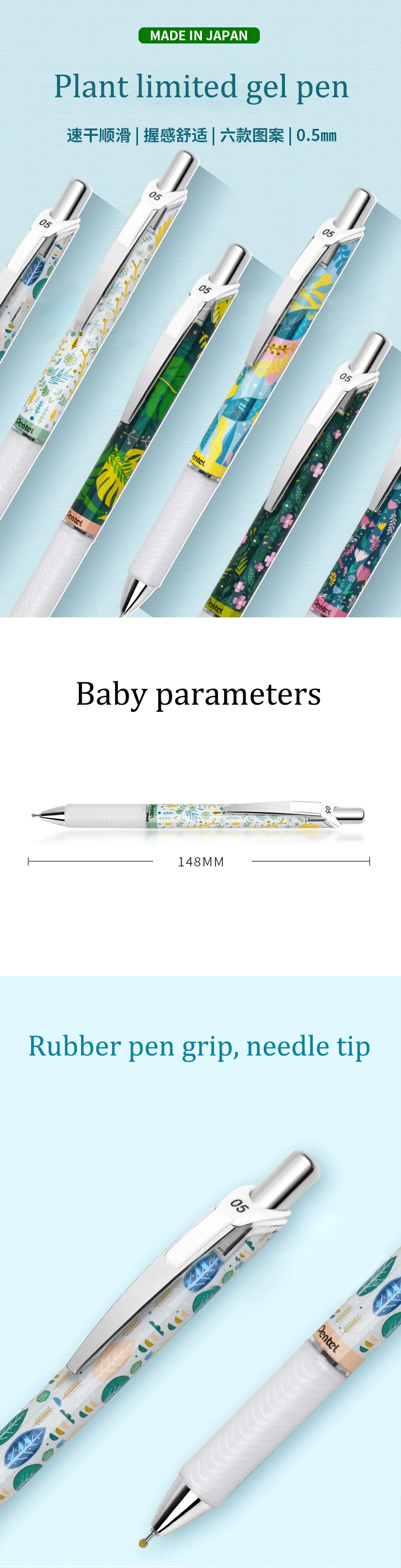 Гелевая ручка Pentel 2020 с ограниченным цветочным рисунком, черная быстросохнущая чернила BLN75KW 0,5 мм, стойкая к поломке чернила, долгое время записи, 1 шт.
