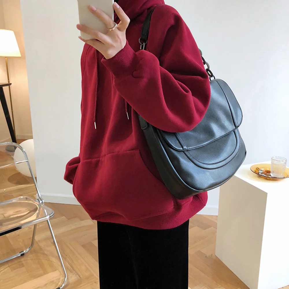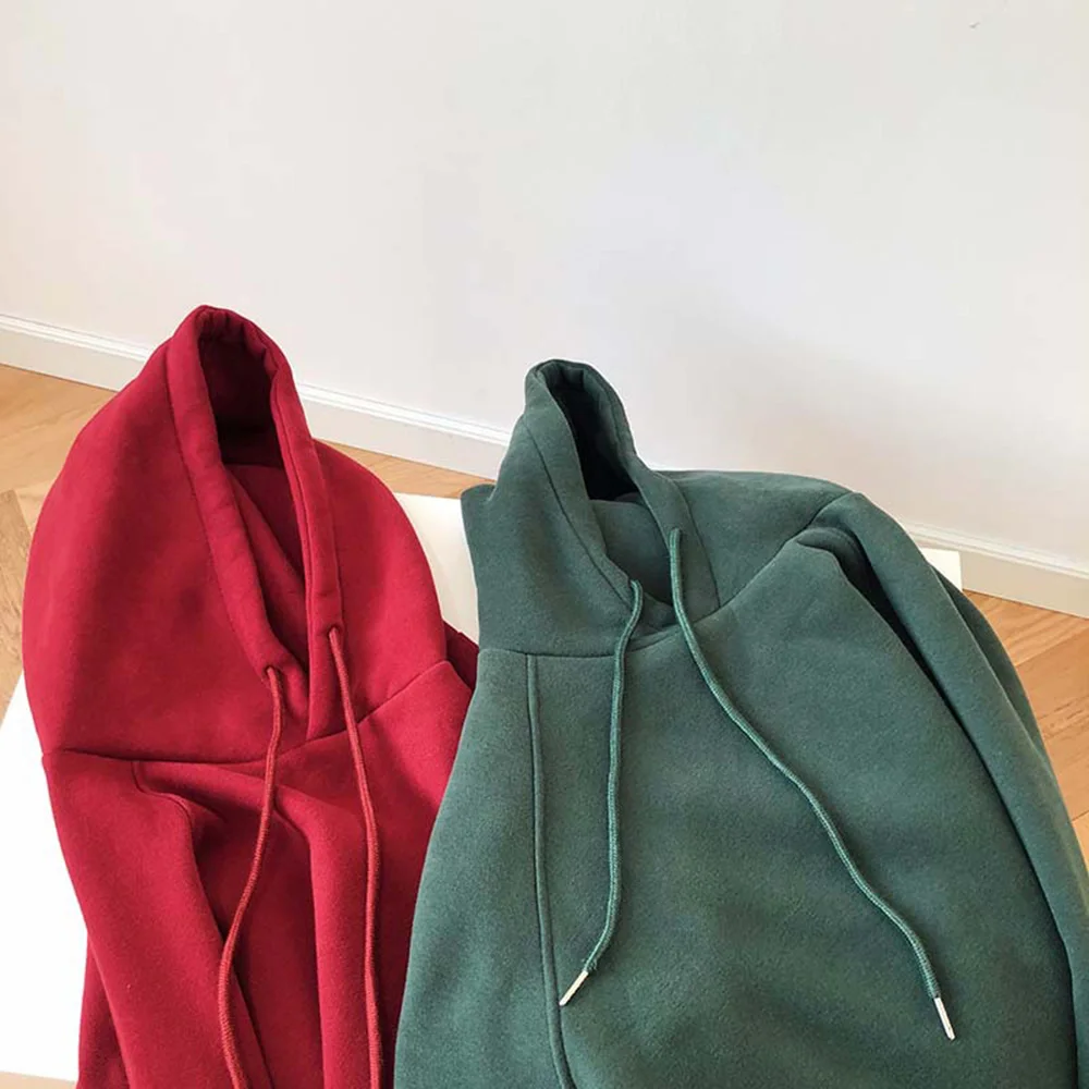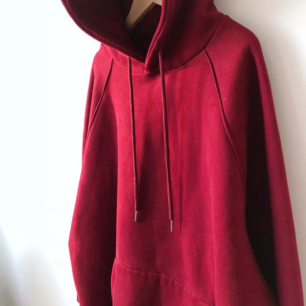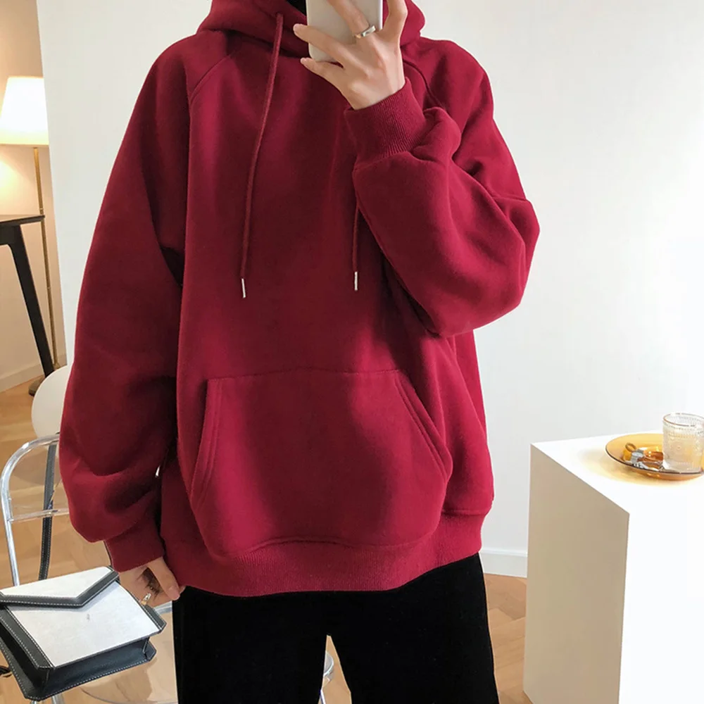 Осенняя Женская толстовка с капюшоном и длинным рукавом, корейский стиль, мягкая свободная толстовка, Повседневный пуловер, темно-красный, зеленый цвет, однотонные Бархатные Топы