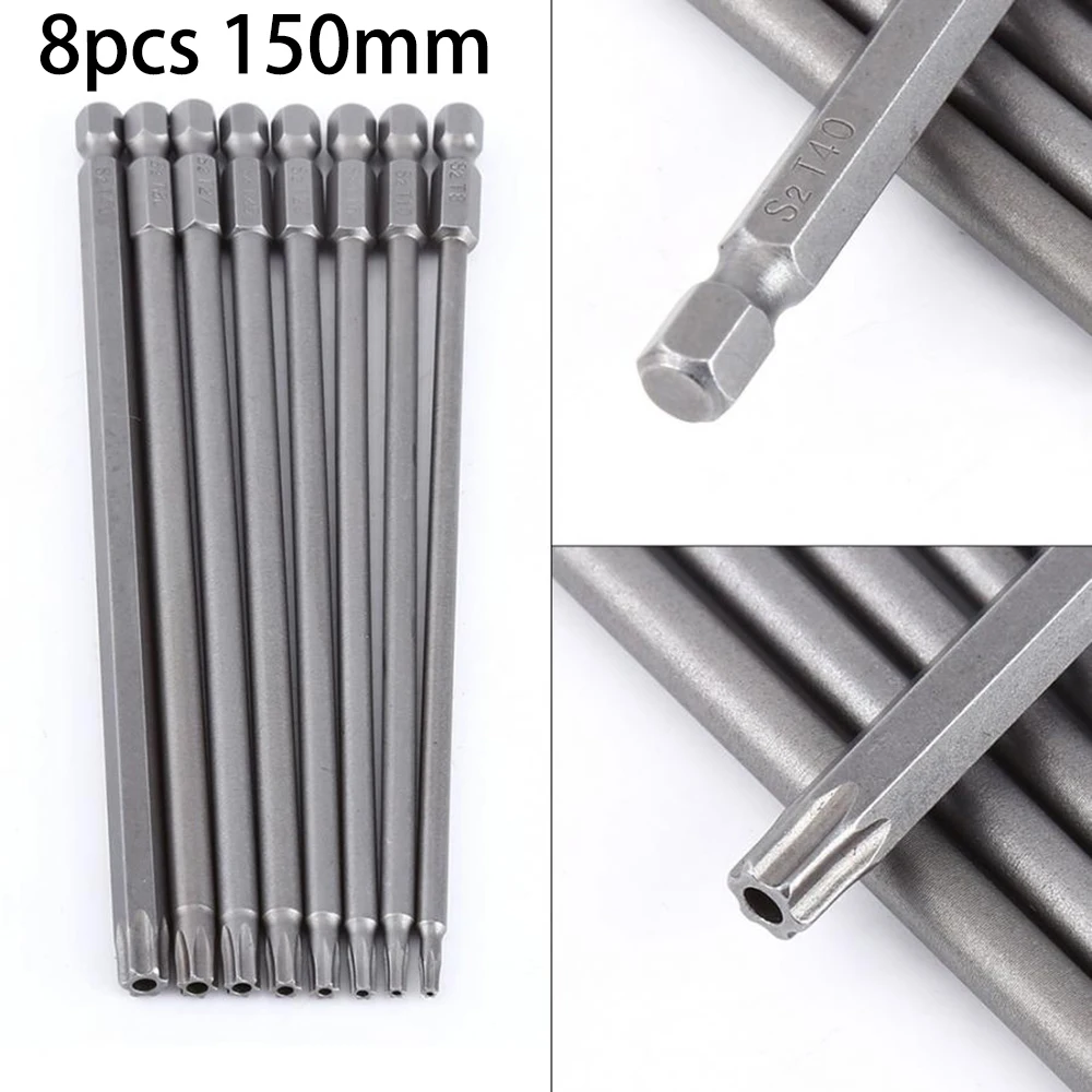 8 шт.компл. 150 мм 14 "магнитный шестигранный хвостовик T8 T40 длинный стальной Torx Security набор наконечников для электрической отвертки