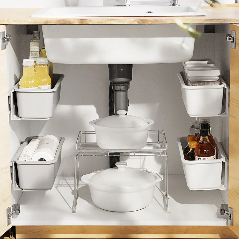 Под раковиной стеллаж для хранения выдвижной шкаф корзина организат...