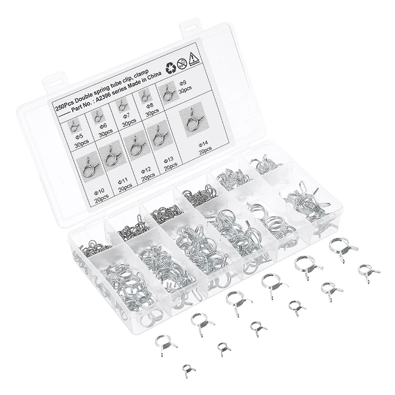 250 шт., пружинный зажим из нержавеющей стали 5 мм-14 мм, зажим для воздушной трубки масла, шланга, для автомобилей, лодок, квадроциклов, мотоциклов