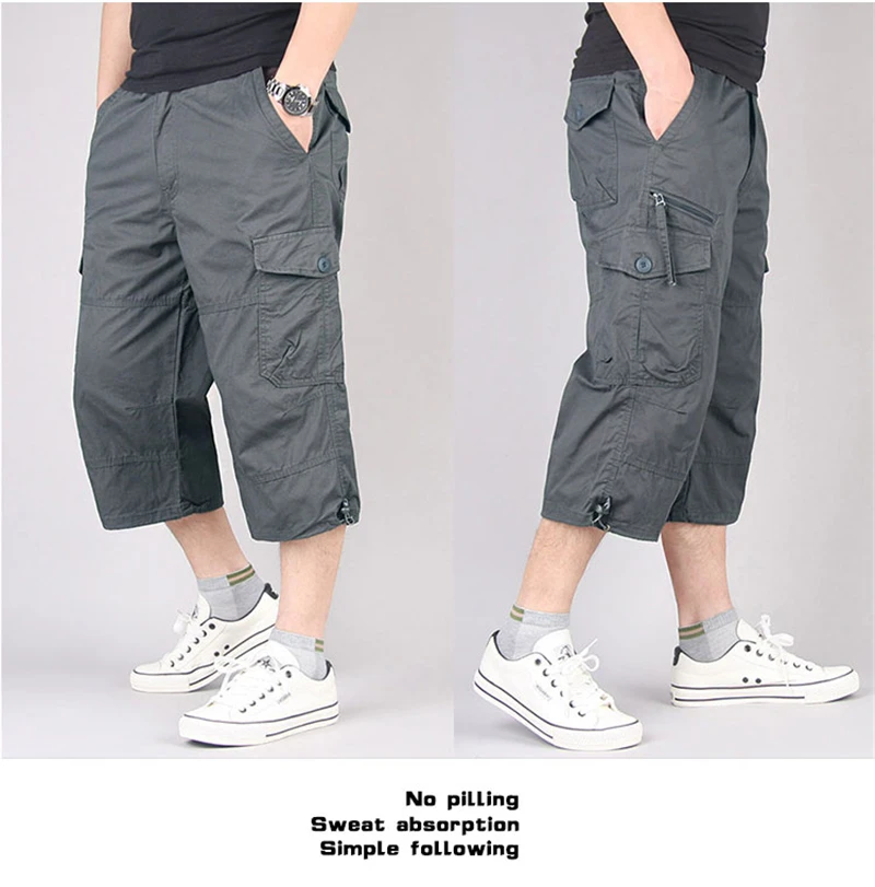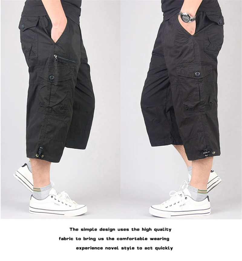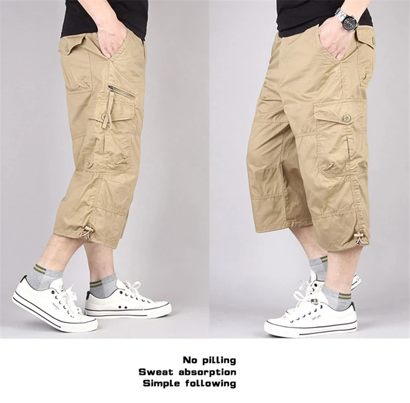 Мужские длинные шорты-карго в стиле милитари, Летние повседневные хлопковые Капри, популярные бриджи размера плюс 5XL, тактические шорты с несколькими карманами