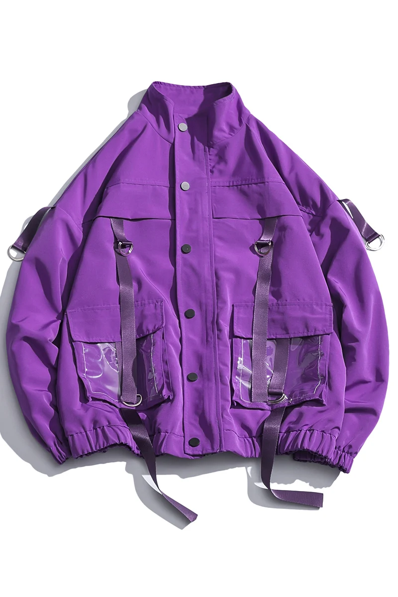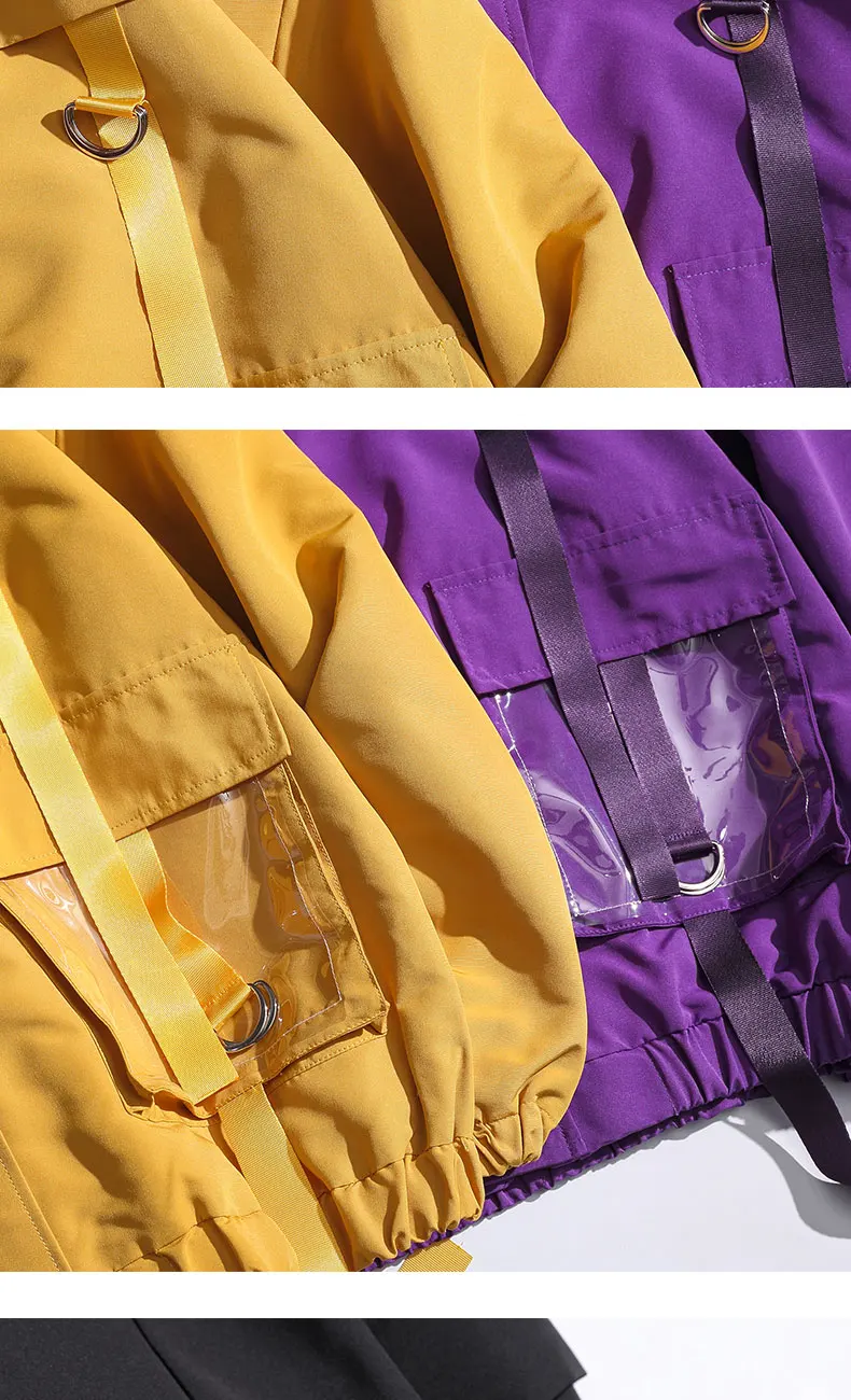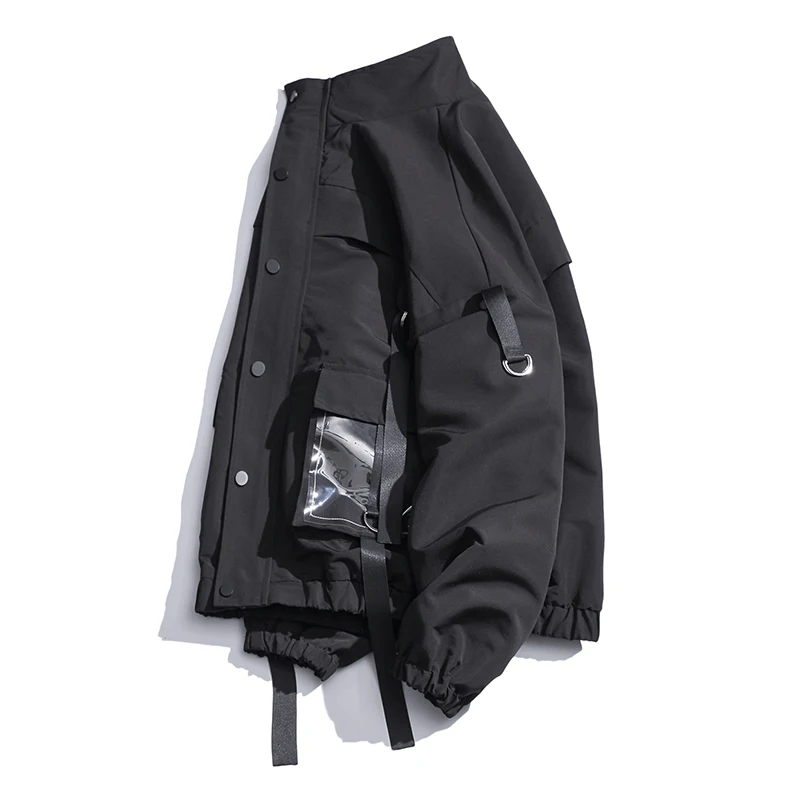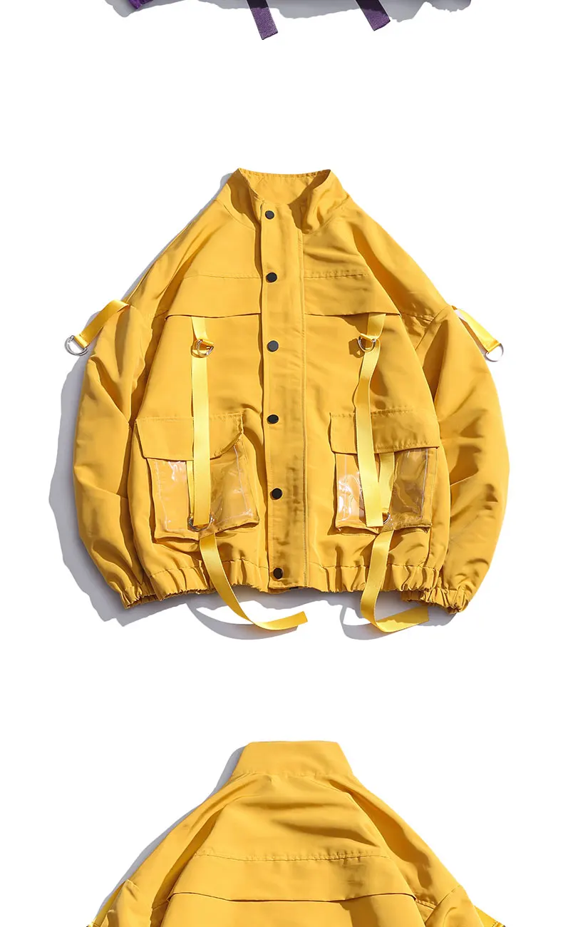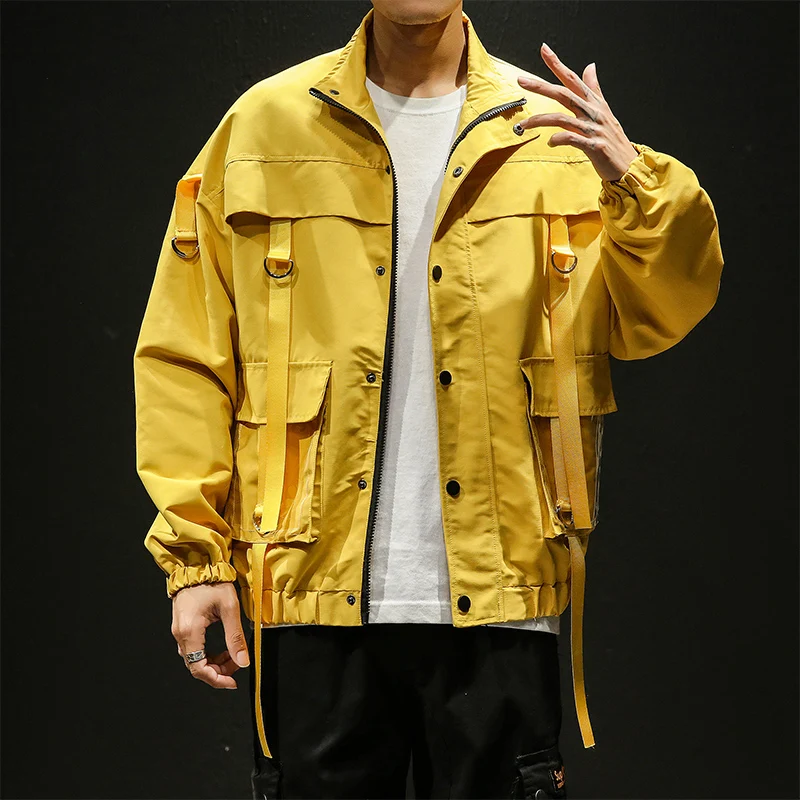 Куртка-бомбер мужская с лентами и карманами, в стиле хип-хоп
