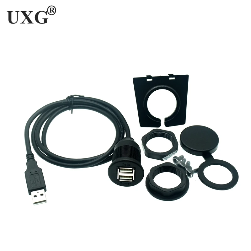 USB 2.0 порта штекер-гнездо Удлинительный кабель Водонепроницаемый утапливаемое крепление двойной USB док-адаптер приборной панели для автомобиля мотоцикла