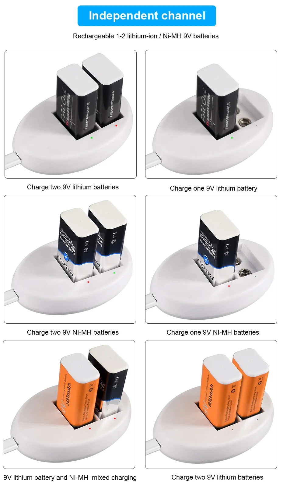 Литиевая аккумуляторная батарея 9 В со светодиодным умным зарядным устройством для литий-ионной перезаряжаемой батареи 9 в