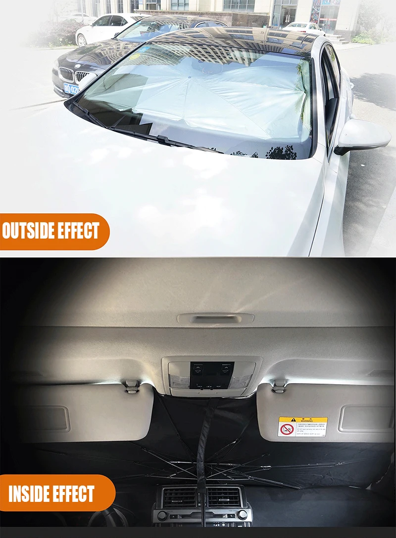 Мягкий и неабразивный материал не поцарапает лобовое стекло. Крышка выступает в качестве фильтрационного барьера против УФ для поддержания внутренней температуры. Зонтик структура ветрового стекла солнцезащитный козырек имеет десять стальных ребер обеспечивает хорошую поддержку и предотвращает падение вниз. Он блокирует УФ-излучение внутри, вам не нужно беспокоиться о потере или краже. Серебряное покрытие обеспечивает хорошую теплостойкость. Складная структура для удобного хранения и портативности.