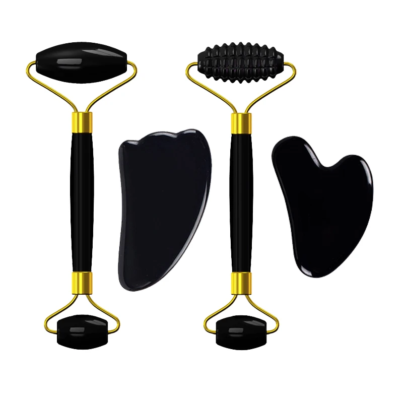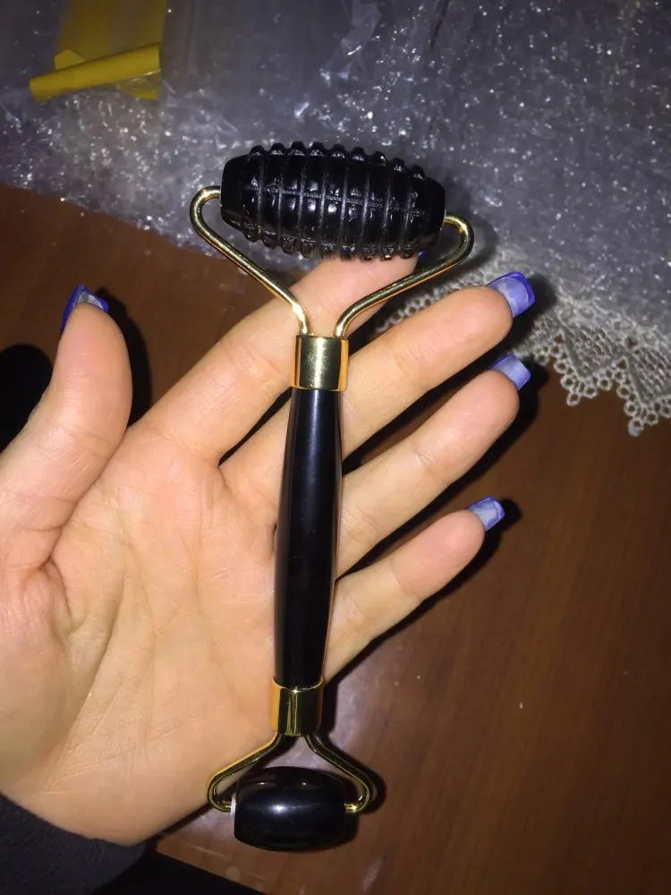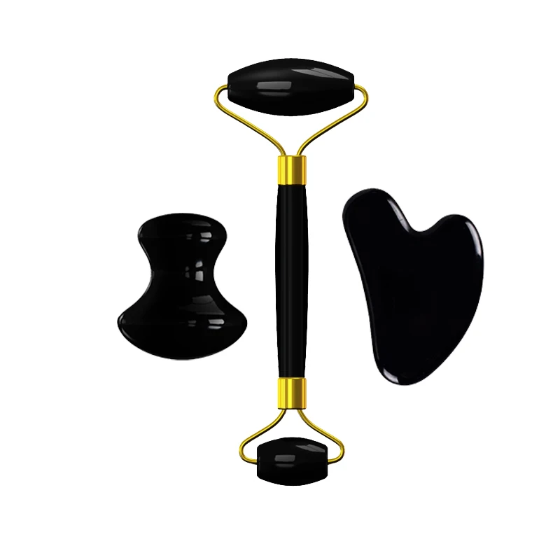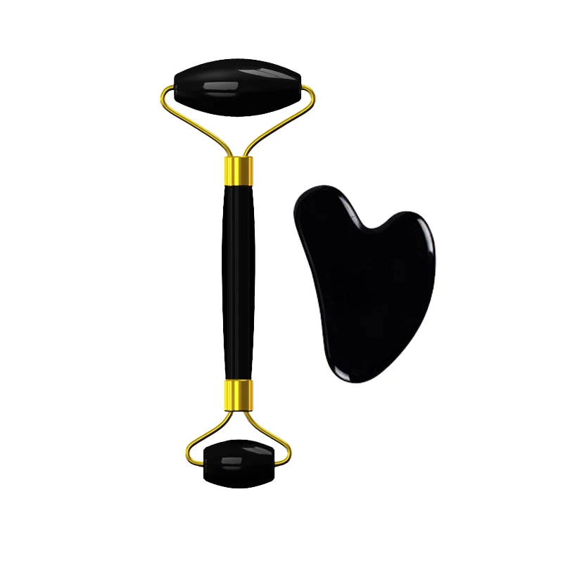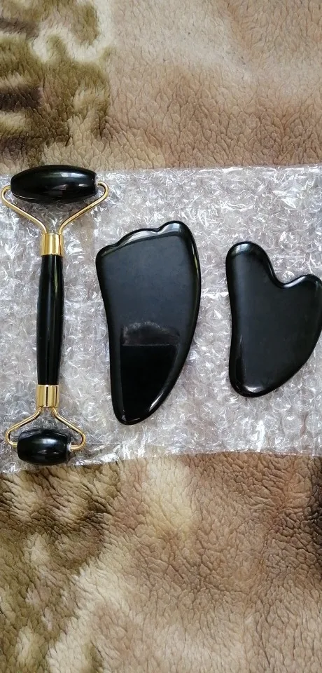 Нефритовый ролик из натурального черного обсидиана, роликовый массажер для лица Нефритовый камень, гуаша скребок для доски, скребок для подтяжки лица