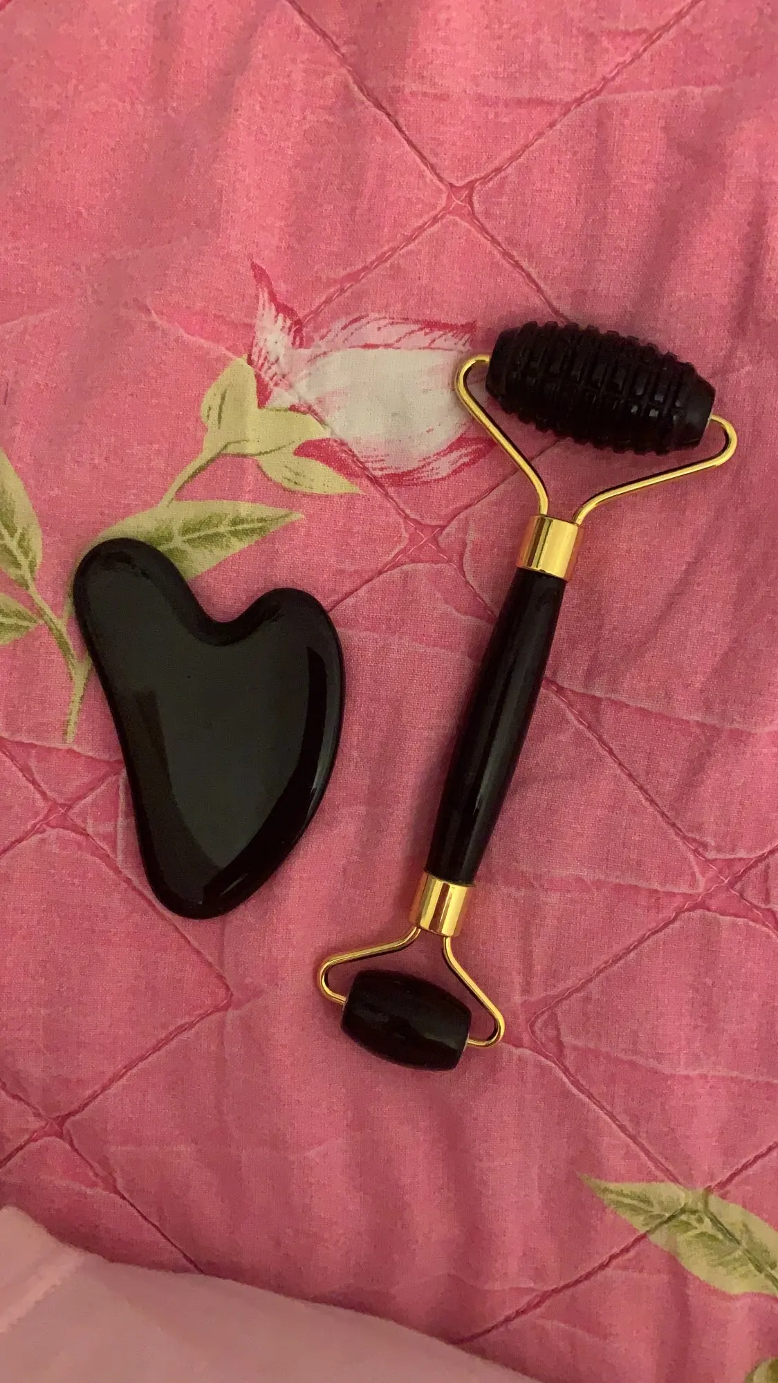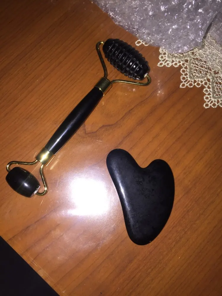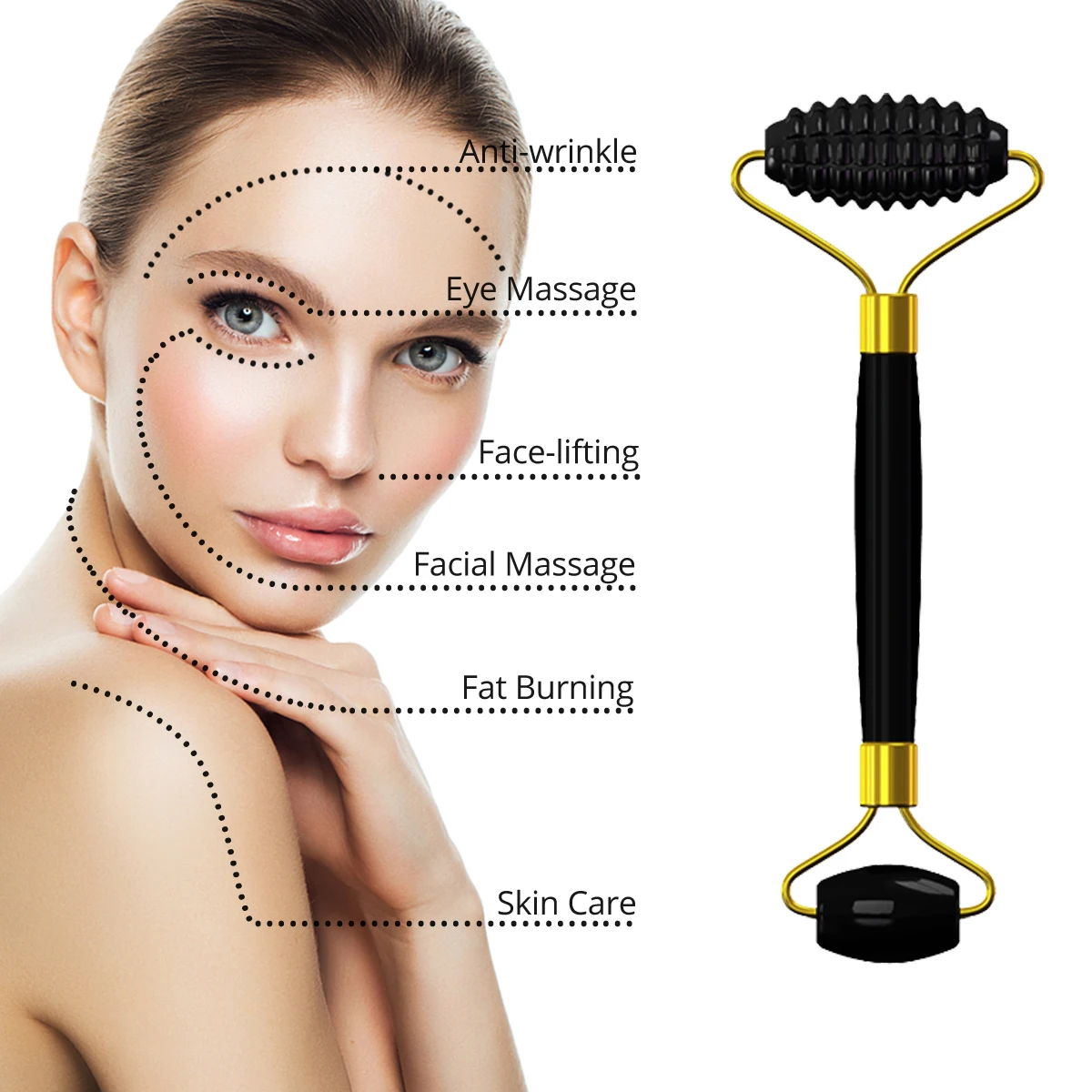Нефритовый ролик из натурального черного обсидиана, роликовый массажер для лица Нефритовый камень, гуаша скребок для доски, скребок для подтяжки лица