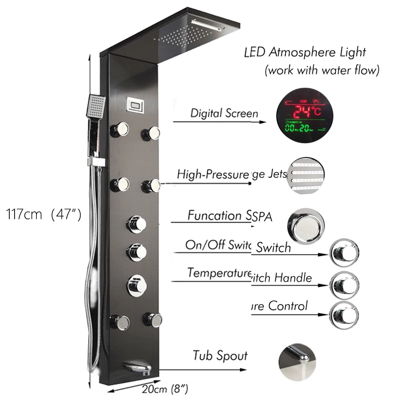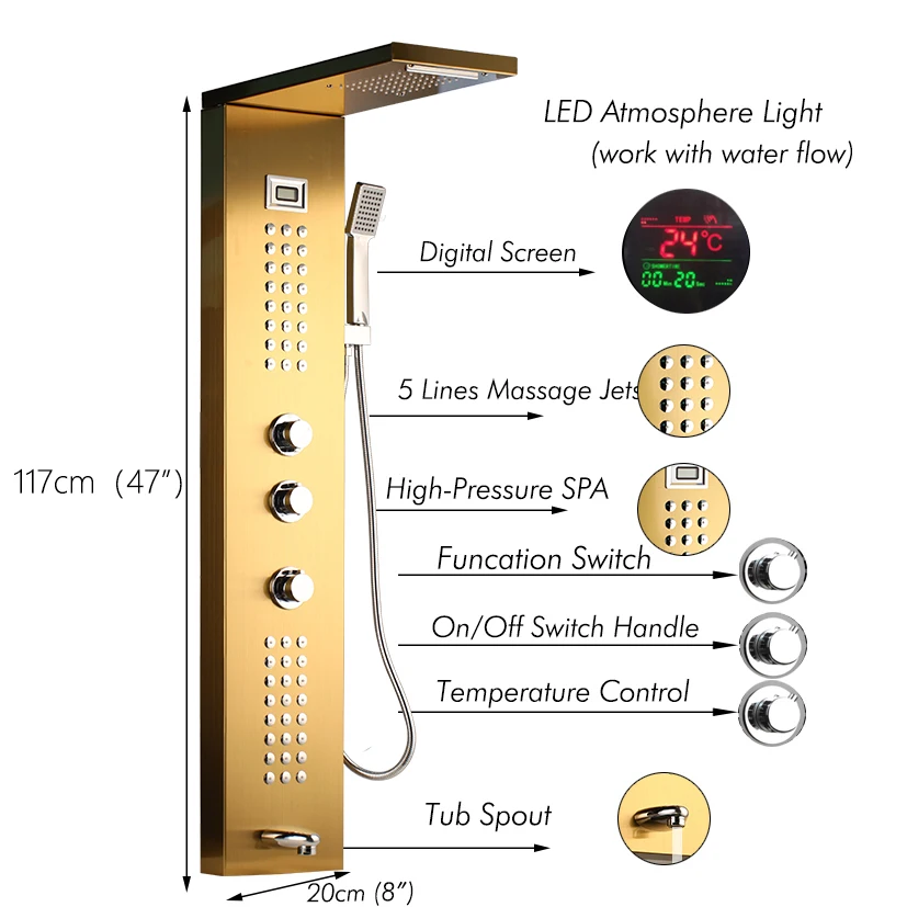 Monite темно-серый душ для ванной комнаты Золотой никель щетка твердая латунь массажные струи головка Wручной опрыскиватель набор душевых столбцов