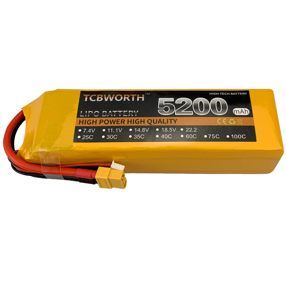 TCBWORTH RC LiPo батарея 2S 7,4 V 3S 11,1 V 4S 14,8 V 5S 18,5 V 6S 22,2 V 5200mAh 100C для RC вертолета самолета квадрокоптера автомобиля лодкиГрафенАккумуляторы