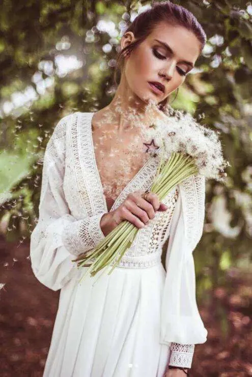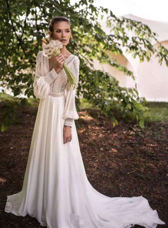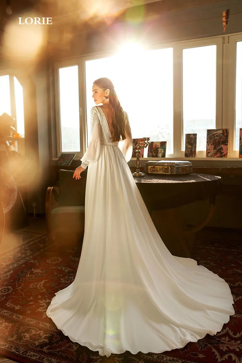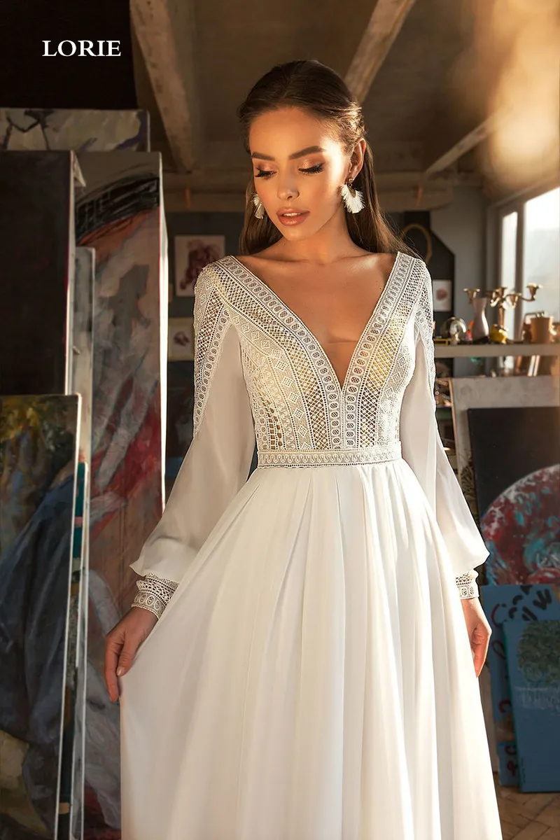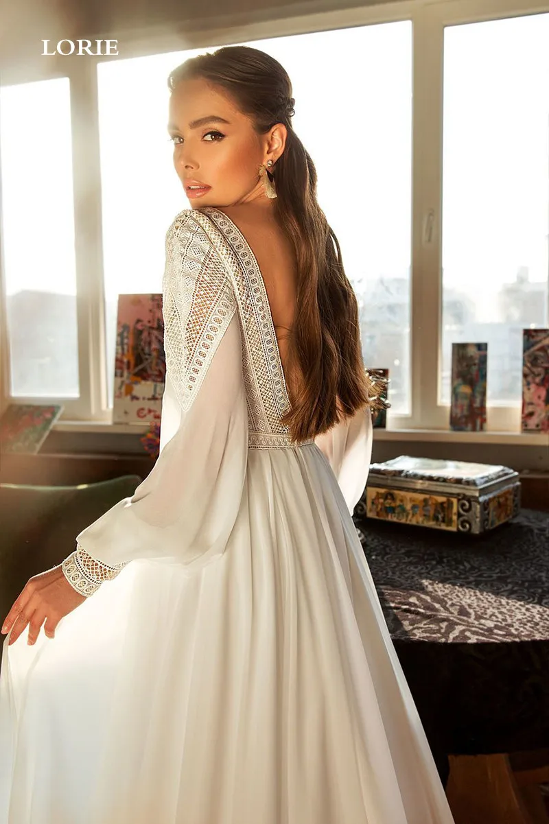 Свадебное платье LORIE в богемном стиле с пышными рукавами, кружевное свадебное платье с V-образным вырезом, 2020, платье с открытой спиной для свадебной вечеринки, индивидуальный пошив