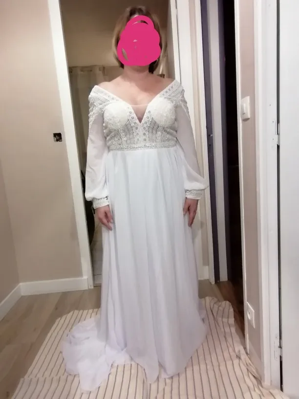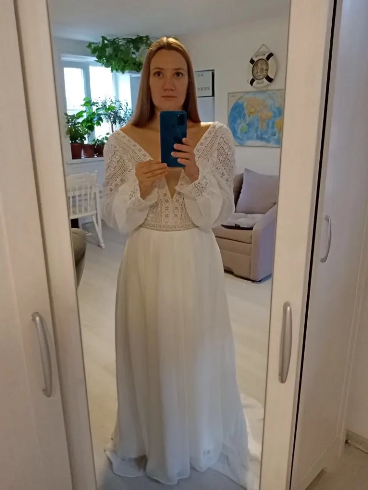 Невероятно потрясающе! Я на Луне со своим платьем! Блестящий, фантастический для работы и очень отзывчив на любые вопросы, которые у меня были. Платье сделано красиво и с двойной подкладкой, юбка имеет достаточно материала, чтобы быть управляемым для ходьбы, но по-прежнему достаточно Тяжелая для драпировки и потока. Каждая деталь идеальна и сделана для измерения, поэтому мне не нужно будет делать изменения. Отправка с большим количеством времени перед свадьбой, даже с запоздалыми и usps задержками. Извините за зеркало, я обновлю фотографии со дня свадьбы. Люблю мое платье и абсолютно рекомендую!