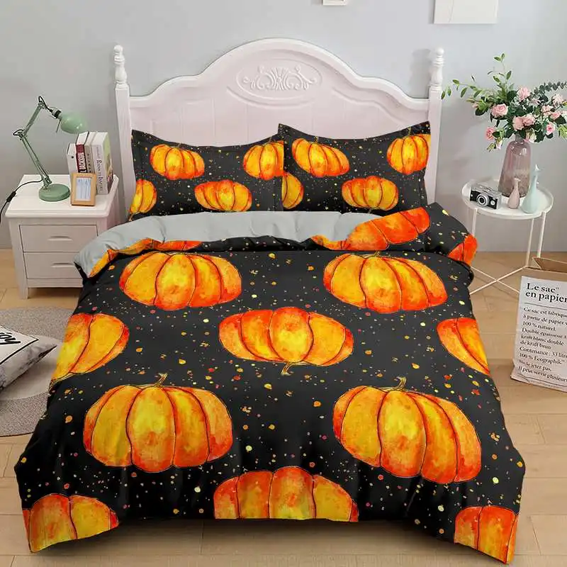 Мультфильм напечатан тыквами 23 шт. пододеяльник и Подушка Чехол постельного бельяEUUSUKAUUK Твин Полный Queen King Размеры