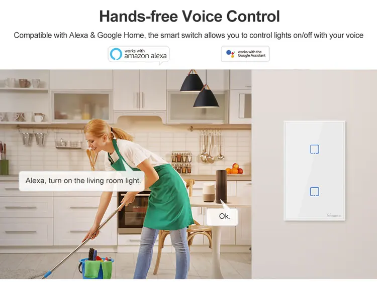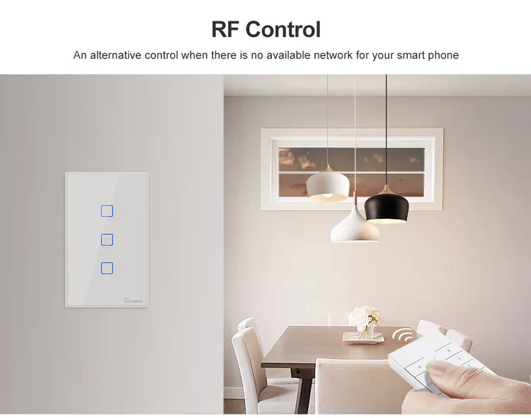 Sonoff T0 T2 T3 US можно управлять удаленно с помощью вашего телефона, а устройства, подключенные к переключателям, могут работать независимо. Работает с Amazon Alexa и Google Assistant, которые позволяют включать или выключать вашу технику с помощью голосовых команд, идеально подходит для тех, кому нужно одновременно выполнять большую работу по дому. Особенности чувствительные сенсорные кнопки, которые крепятся на простых и стильных переключателях, чтобы обеспечить современное и красивое украшение любой поверхности стены. Небольшое нажатие для упрощения управления.