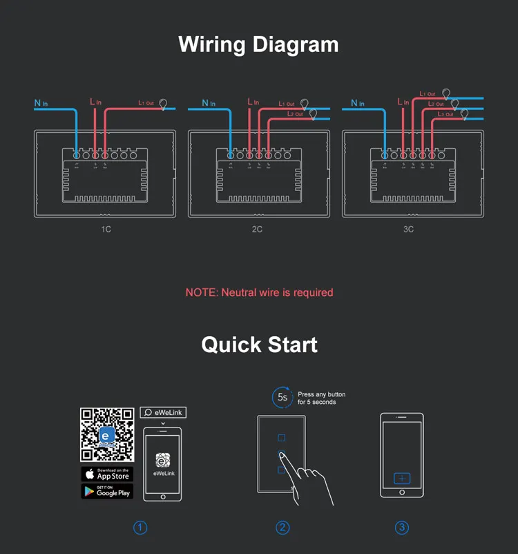 Примечание: T0 T2 T3 US должен питаться от проводов под напряжением и нейтральных проводов иПереключатели T0 US 123 не поддерживают RF 433 МГц
