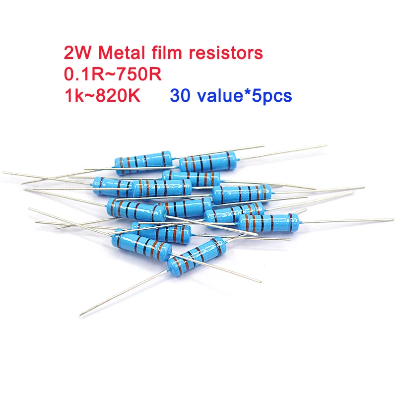 150 шт.лот 2 Вт металлопленочные резисторы 1% 1k 820K, угольный пленочный резистор 5% 0.1R-750R, комплект сопротивления проволочной обмотке 30 значений