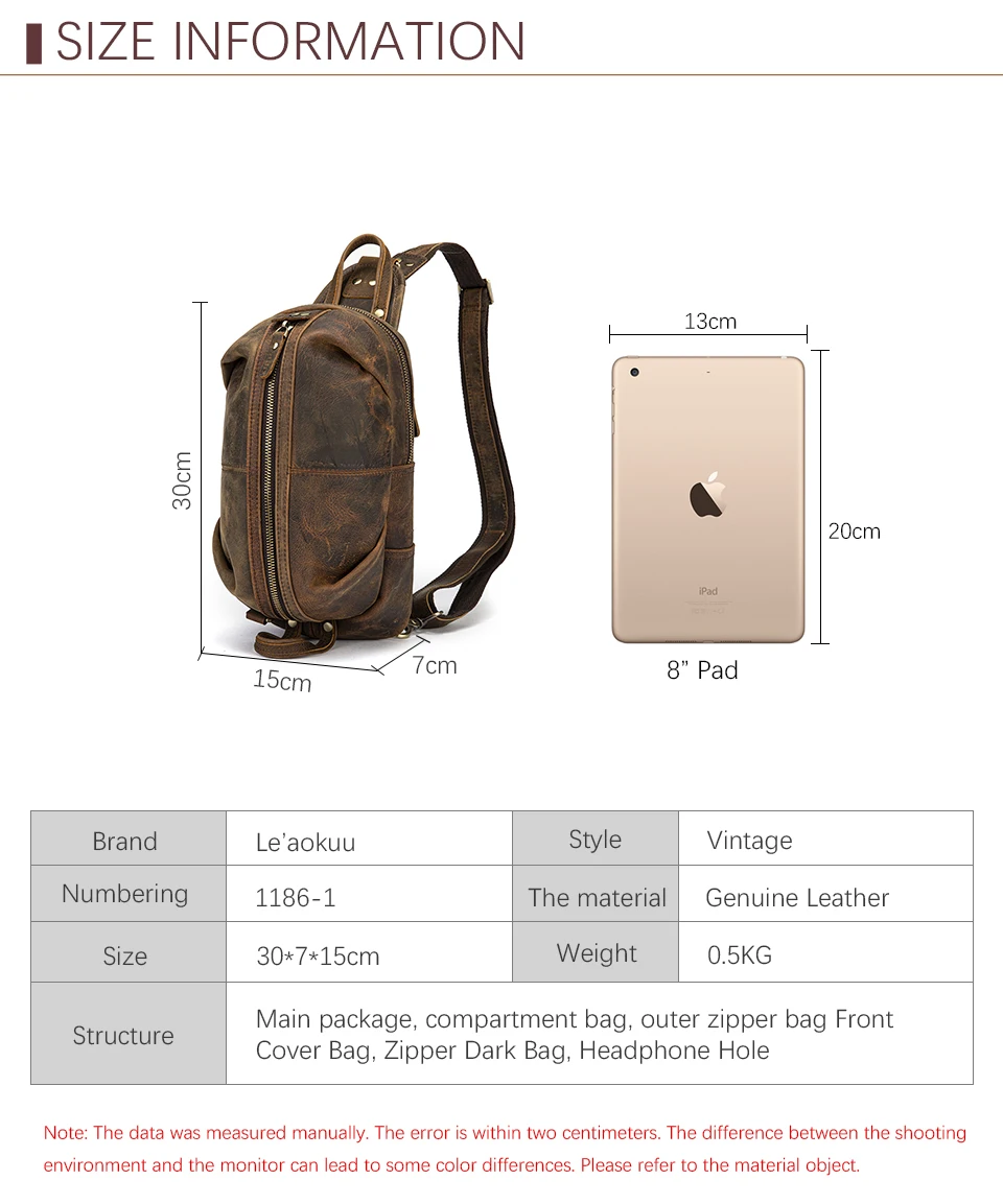 Мужская нагрудная сумка, Повседневная сумка из вощеной кожи, 1186