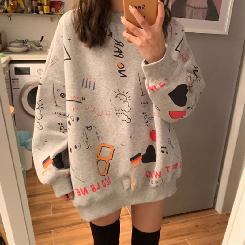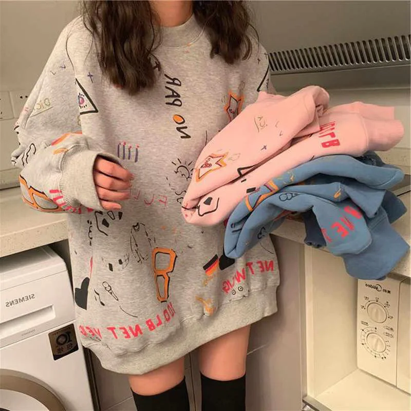 Осенне-весенняя женская одежда, толстовки для подростков, уличный стиль Харадзюку, хип-хоп, Пастельная толстовка, Свободный Повседневный пуловер оверсайз с принтом, худи