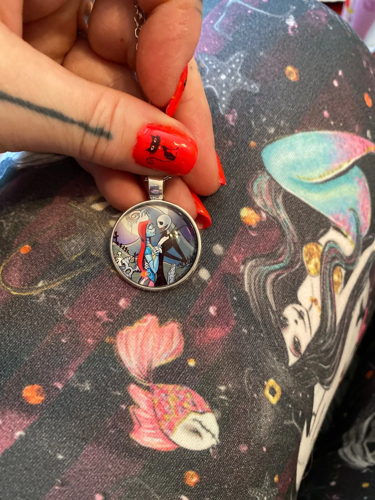 Джек Скеллингтон Кошмар перед Рождеством круглый стеклянный кабошон посеребренныйхрустальный кулон ожерелье ювелирные изделия для подарка