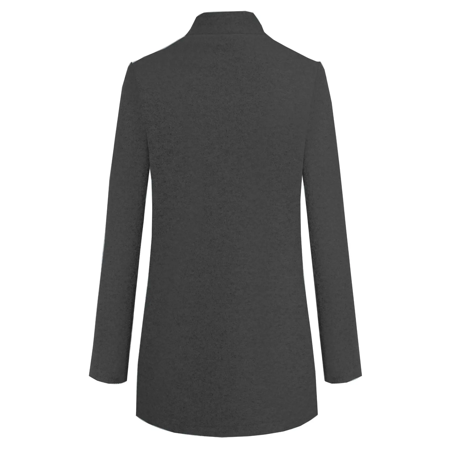 Женская Офисная куртка с воротником-стойкой, Однотонное шерстяное д...