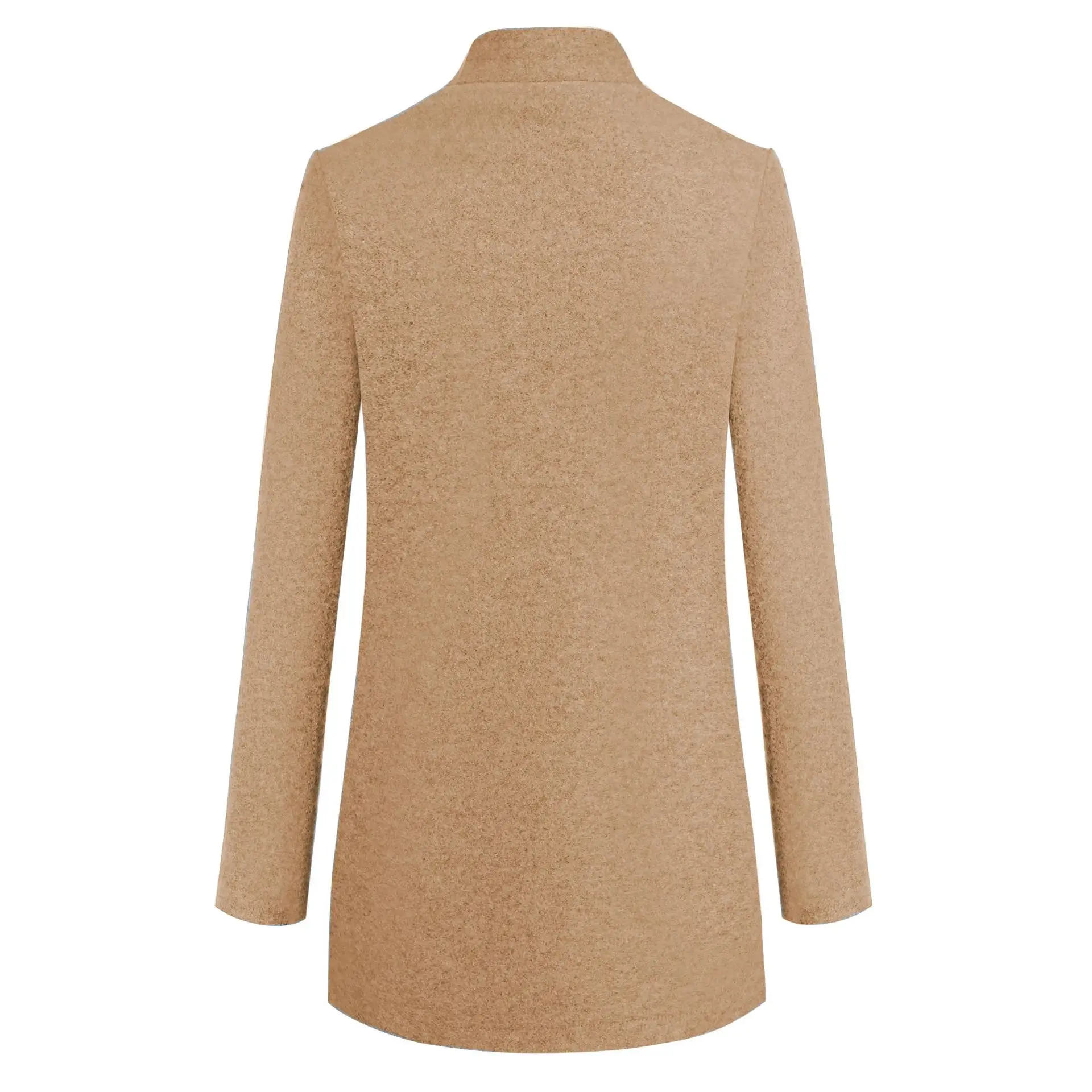 Женское Однотонное шерстяное Свободное пальто со стоячим воротником...
