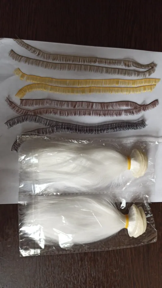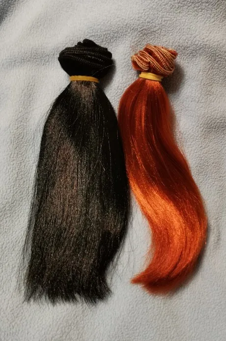 Эти волосы привлекли внимание потому, что по картинке было очень похоже на то, что обычно продавцы называют «имитация мохера», плюс немного другие оттенки. Когда получил - волосы в упаковке было очень похоже, что это оно и есть. Но - нет. Казалось бы все тоже самое - так же блестят, такой же размер, но на ощупь они жёстче, грубее и шероховатые. Это что-то среднее между «имитация мохера» и кукольным канеколоном, который обычно продают на али. Сами волоски тонкие, на концах не путаются. Цвета такие же как на фото
