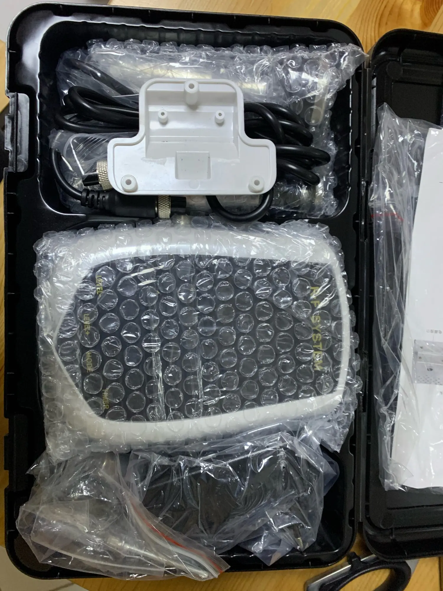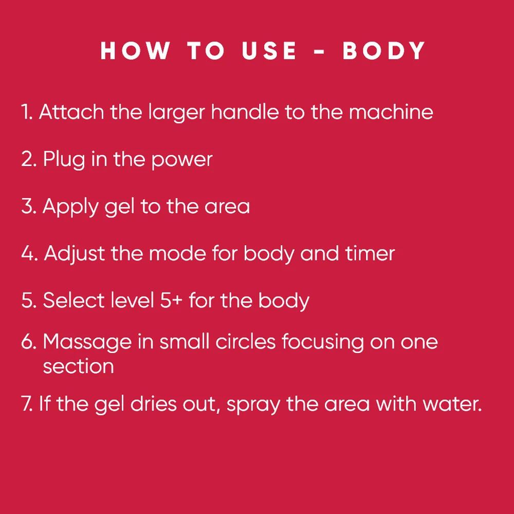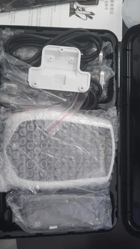 -Руководство не имеет объяснения о работе радиочастоты, как: время, температура, использование геля и т. Д. -Устройство имеет кнопку включения и выключения. Необходимо взять вилку для подключения и отключения устройства. -Продукт имеет риск на экране, но работает.