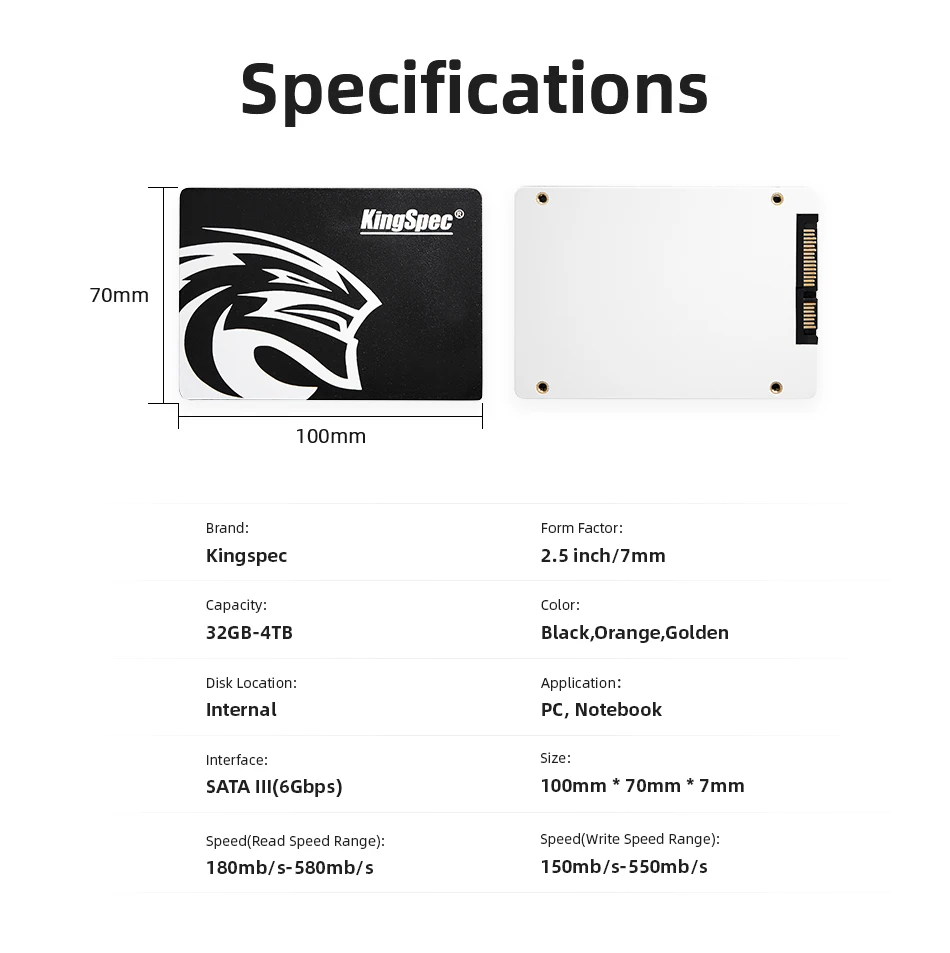 Внутренний твердотельный накопитель KingSpec, SSD 240 ГБ, 2,5 ГБ, 120 ГБ, 512 ГБ, 500 Гб, 360 гб, 1 ТБ, 2 ТБ, 960 ГБ, SATAIII